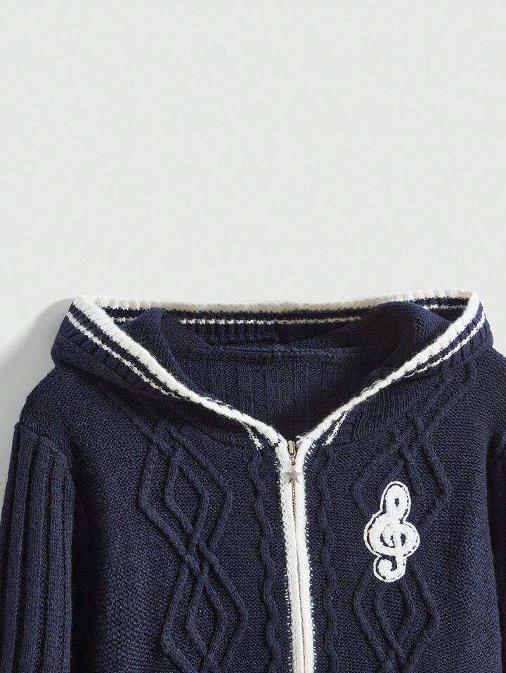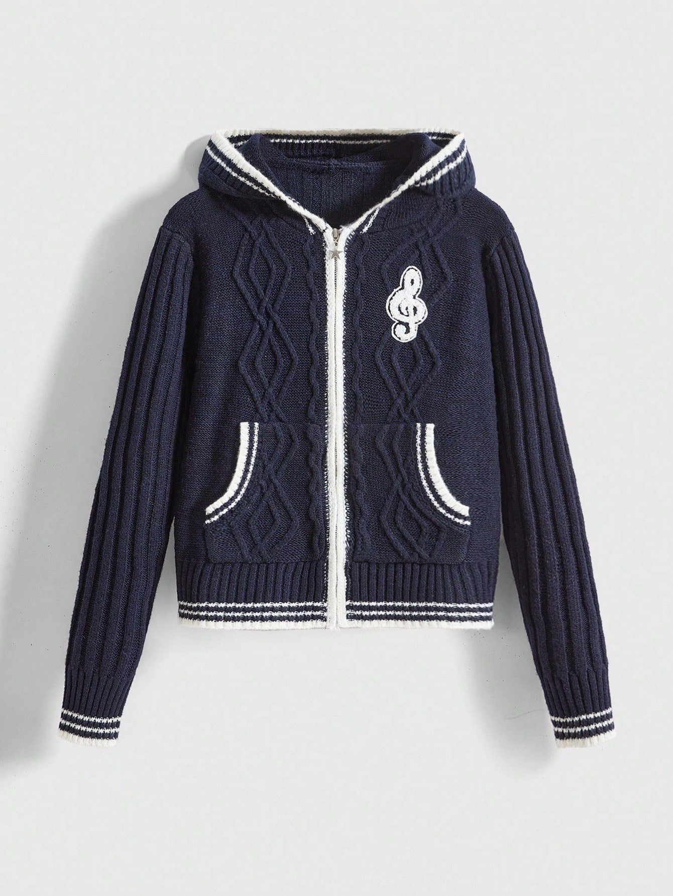 ROMWE Avant Women's Autumn Musical Note Pattern Long Sleeve Zip Front Casual Hoodie Cardigan