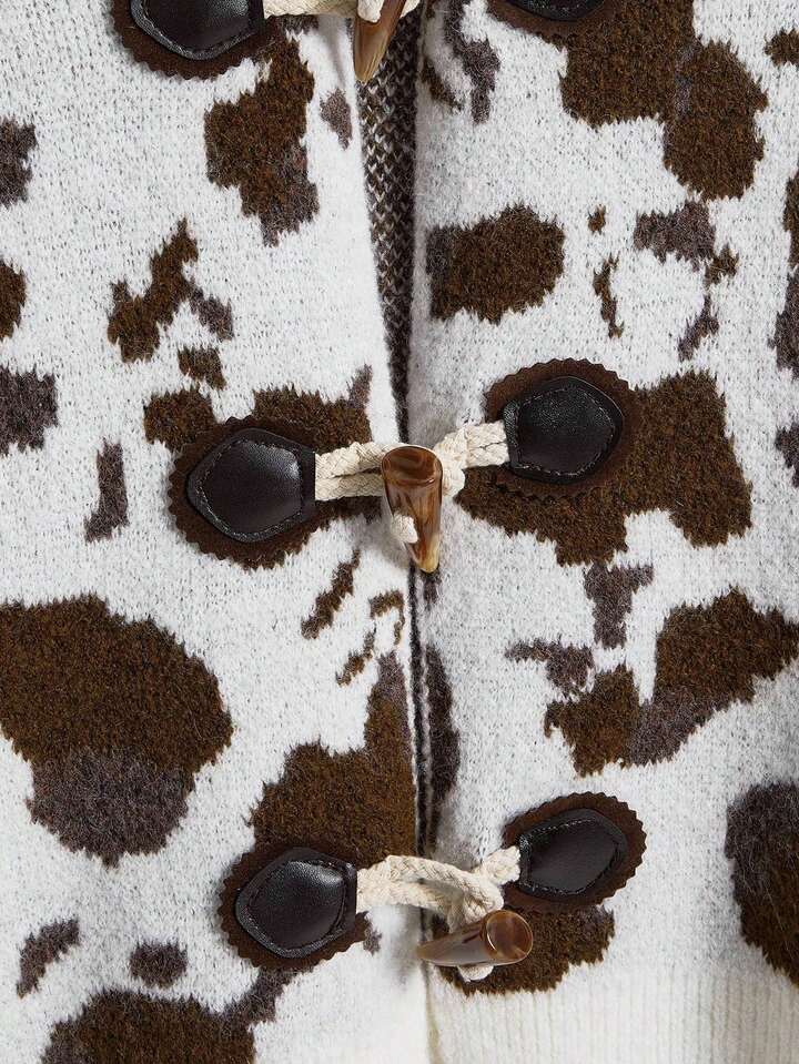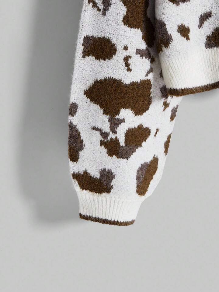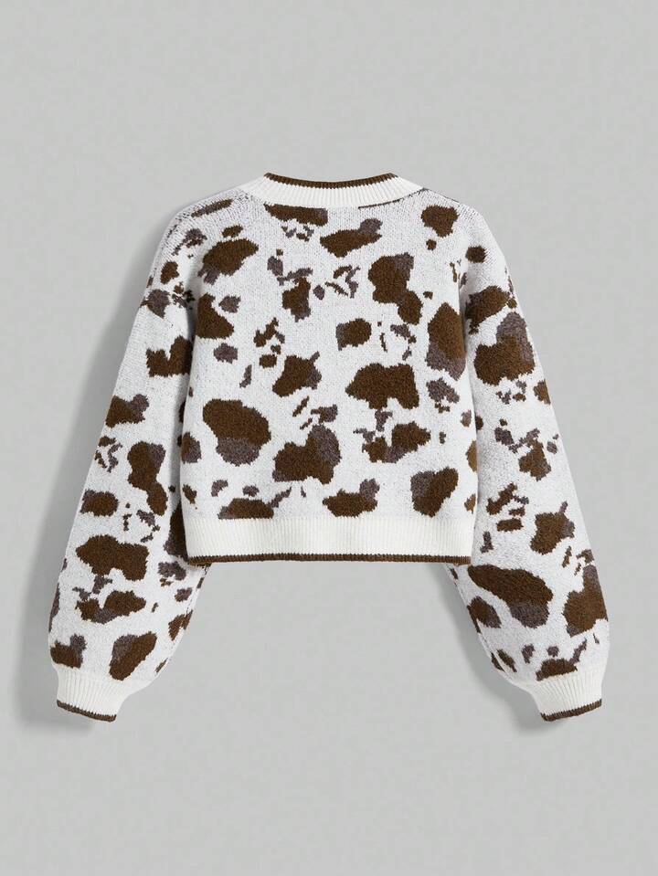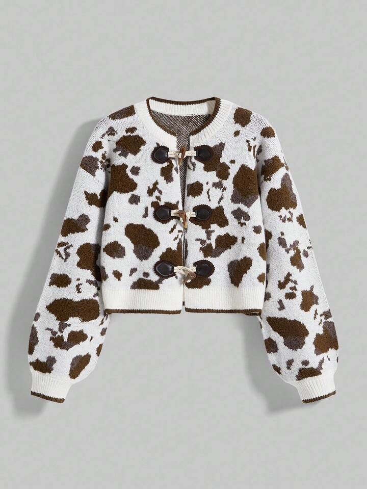 ROMWE Avant Women's Casual Cow Print Jacquard Knit Cardigan With Horn Buttons, Autumn/Winter
