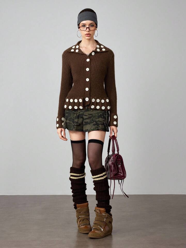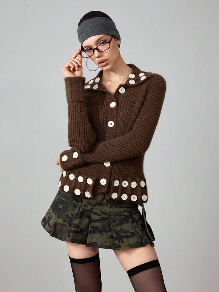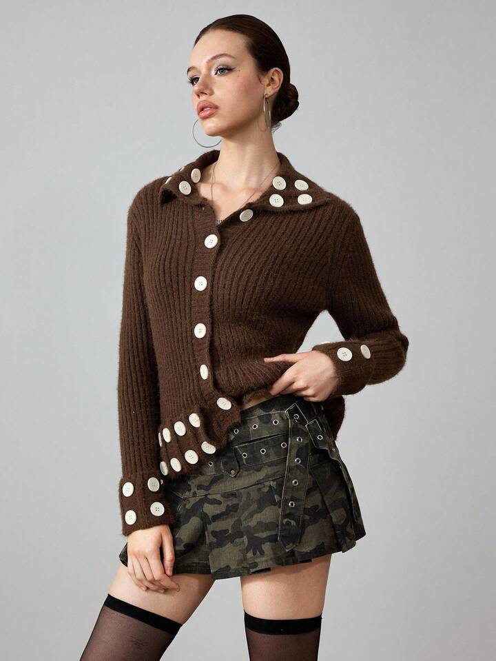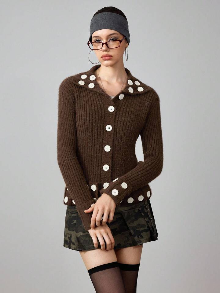 ROMWE Avant Women's Casual Slim Fit Turndown Collar Long Sleeve Cardigan