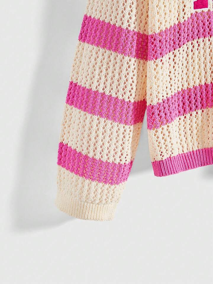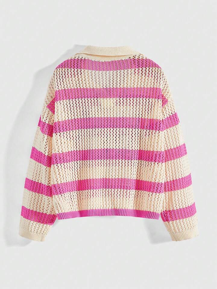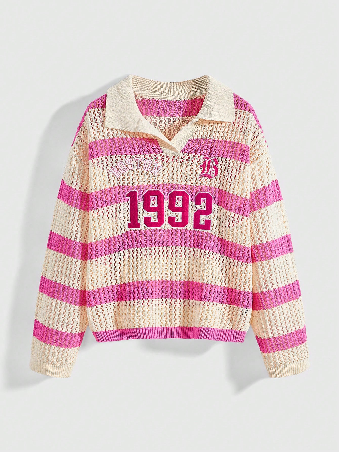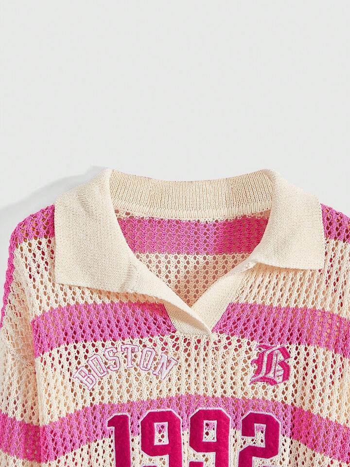 ROMWE Avant Women's Half-Zip Sporty Knit Sweater, Retro Street Style Back To School Collegiate Look