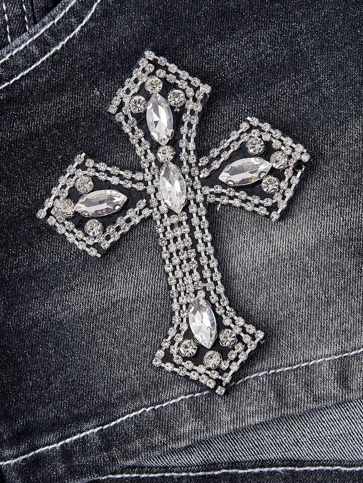 ROMWE Avant Women's Retro Gyaru Biker Style Ultra Low Waist Decorative Mini Skinny Denim Shorts
