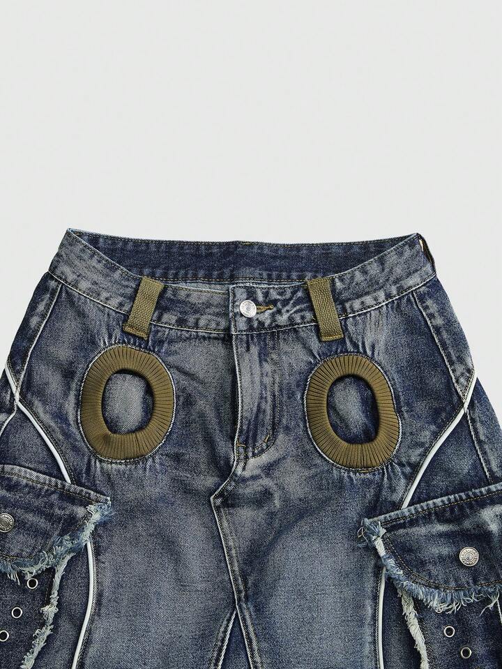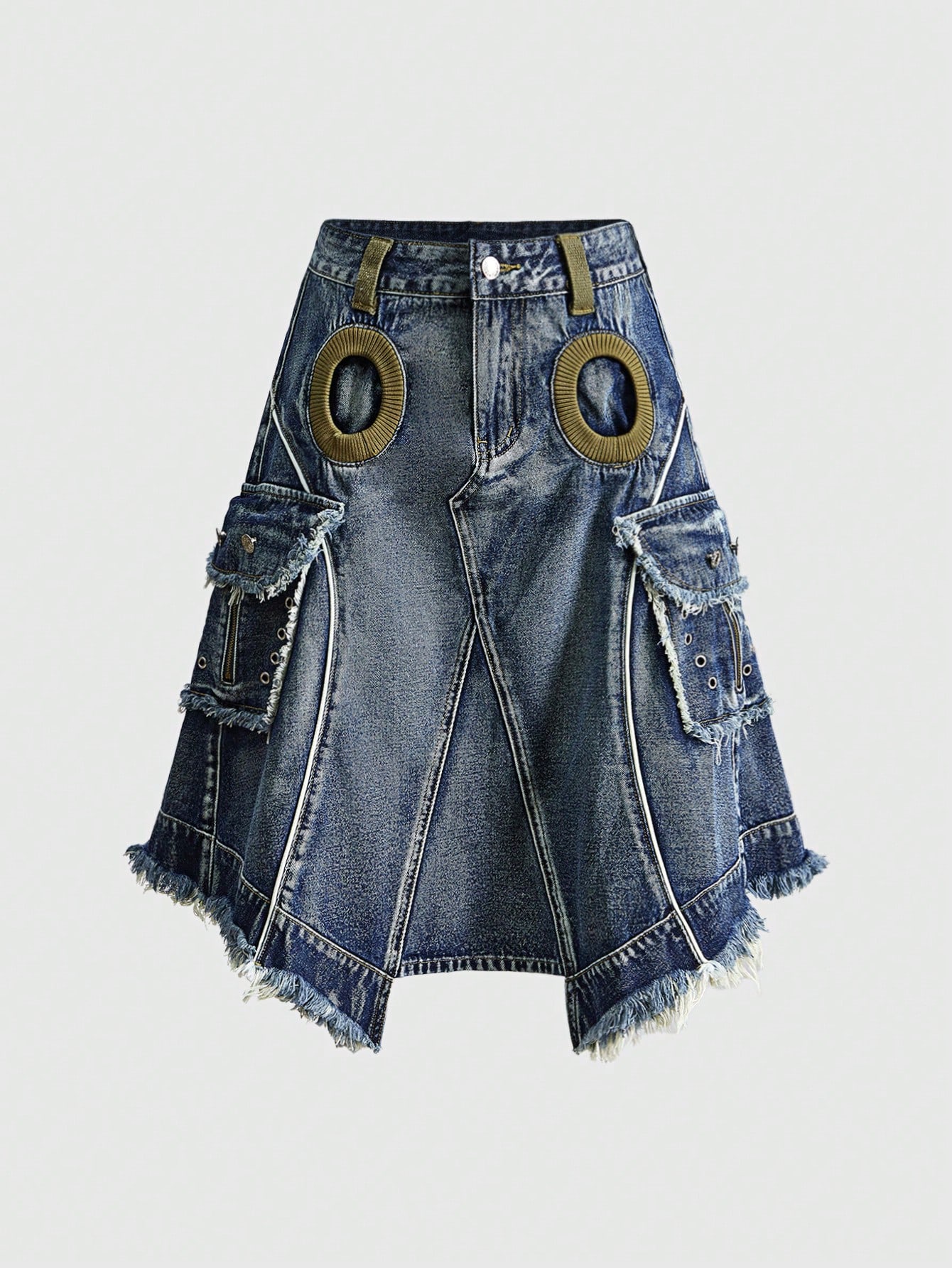 ROMWE Avant Women's Retro Vintage Y2K Aesthetic A-Line Denim Skirt With Cargo Pockets