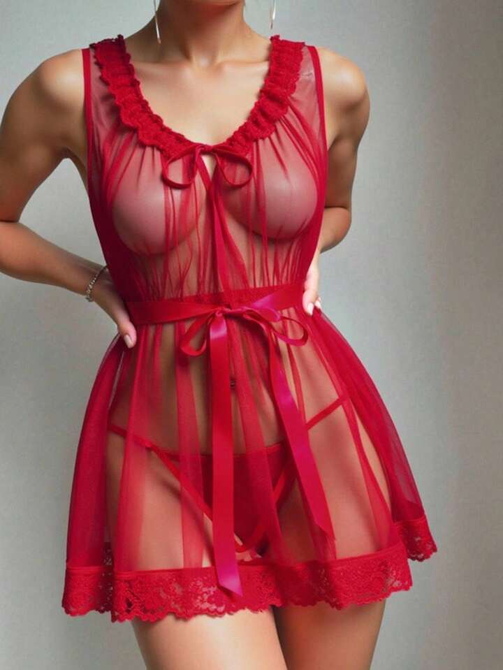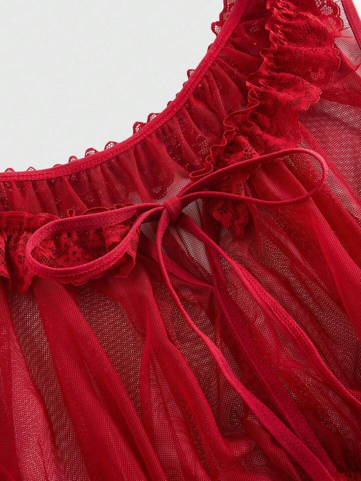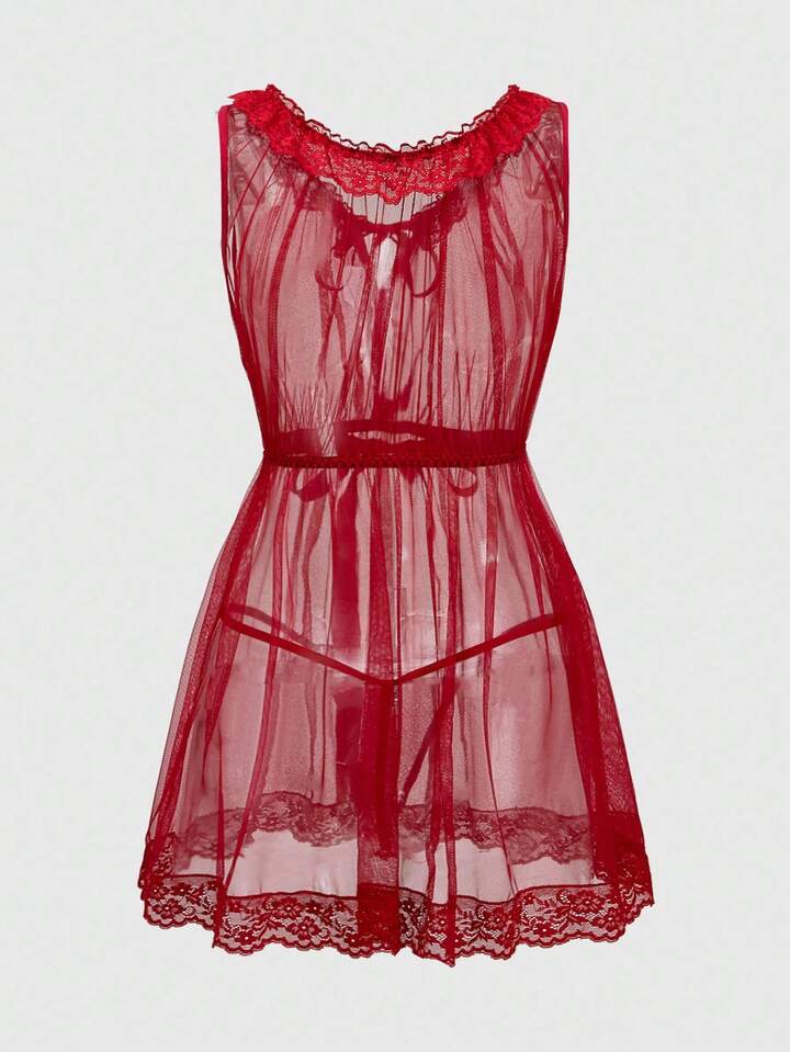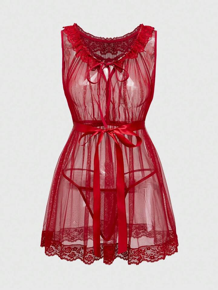 ROMWE Avant Women's Sexy Romantic Mesh Lace Bowknot Sheer Nightgown