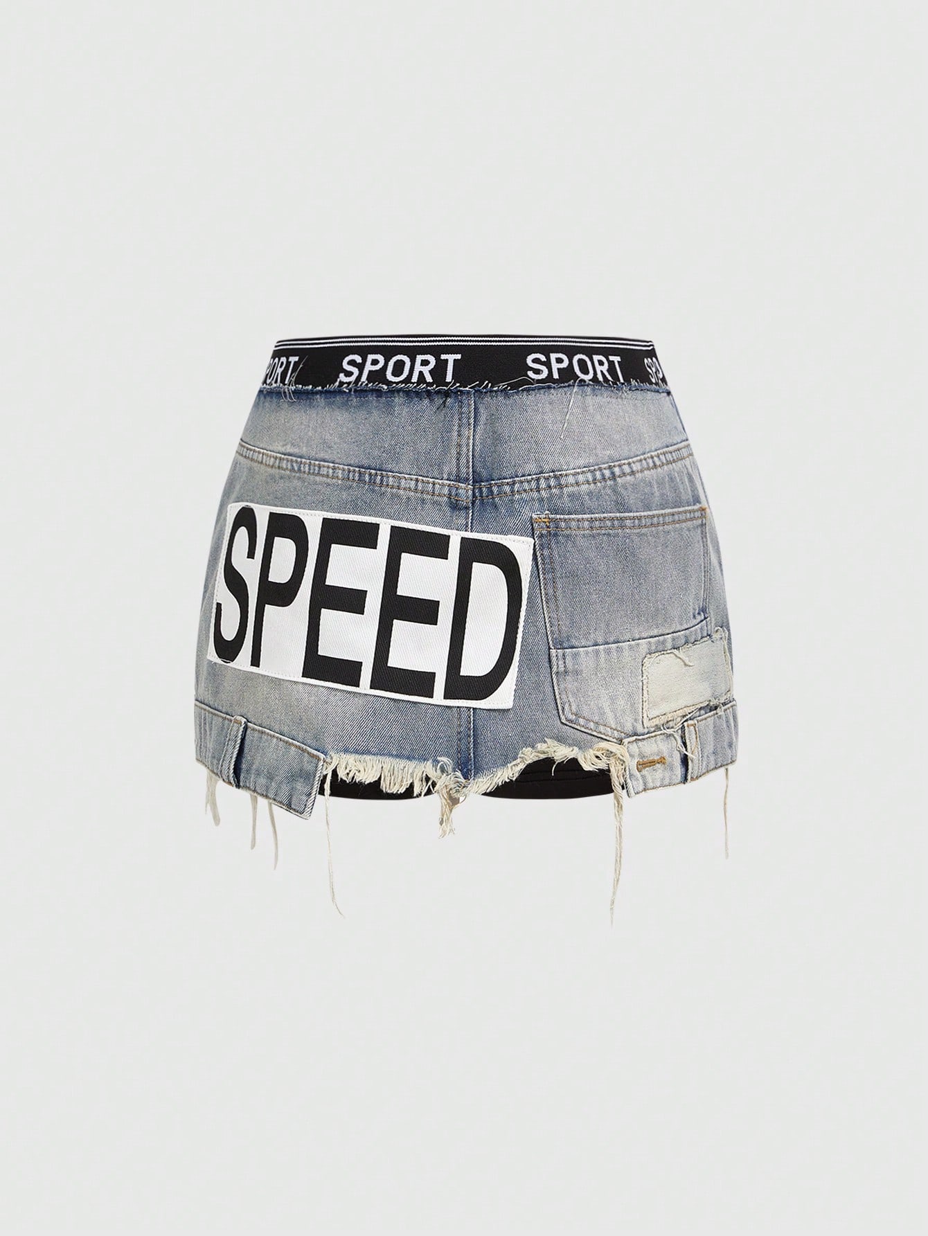 ROMWE Avant Women's Sporty Elastic Waist Low Waist Denim Mini Skirt