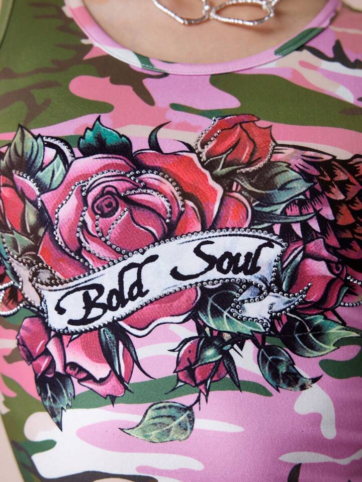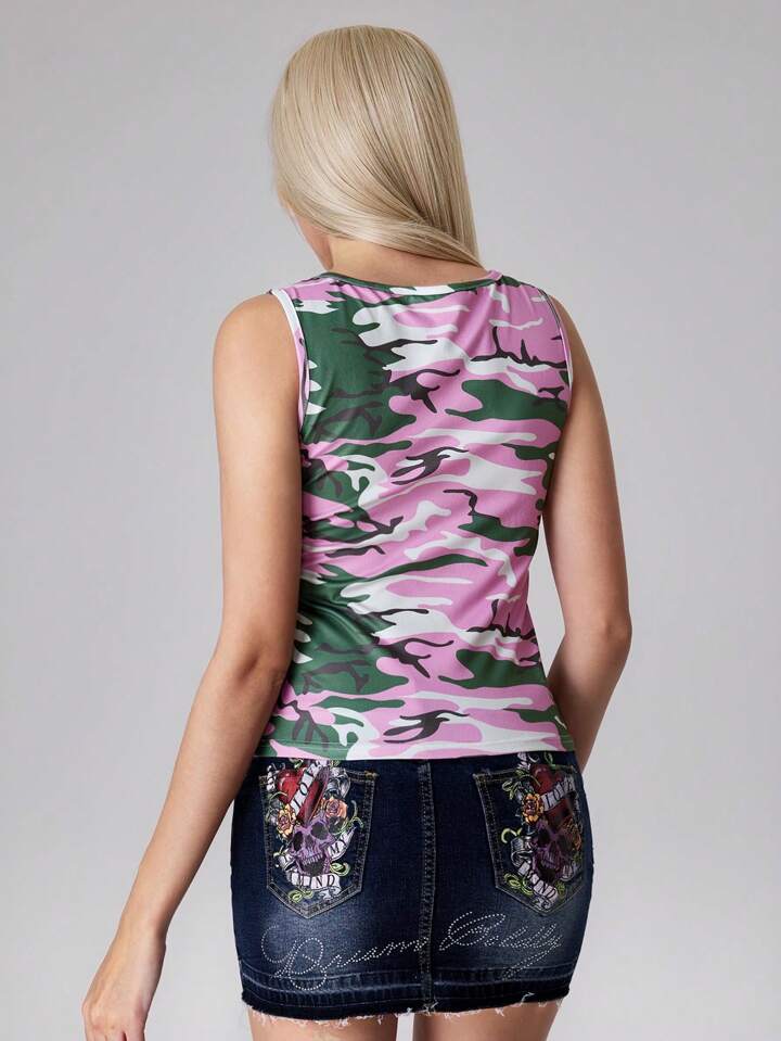 ROMWE Avant Women's Y2K Vintage Girlie Pink Camouflage Rose Flower Wing Rhinestone Tank Top