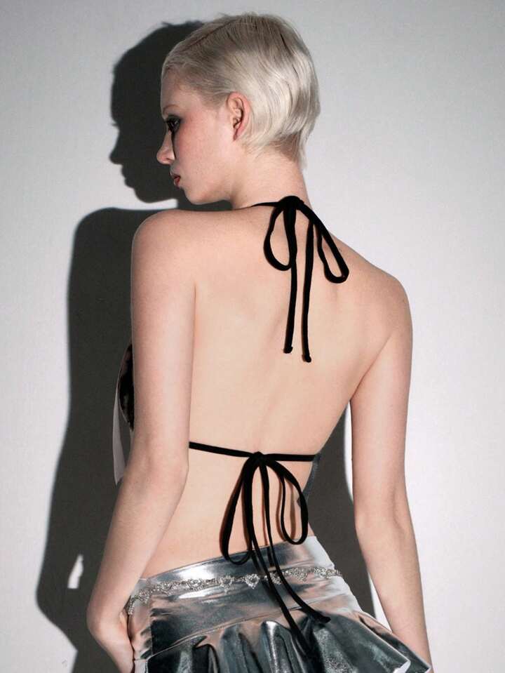 ROMWE Avant Y2K Style Abby Spice Zebra Print Sexy Cute Oversized Bow Bikini Top For Women