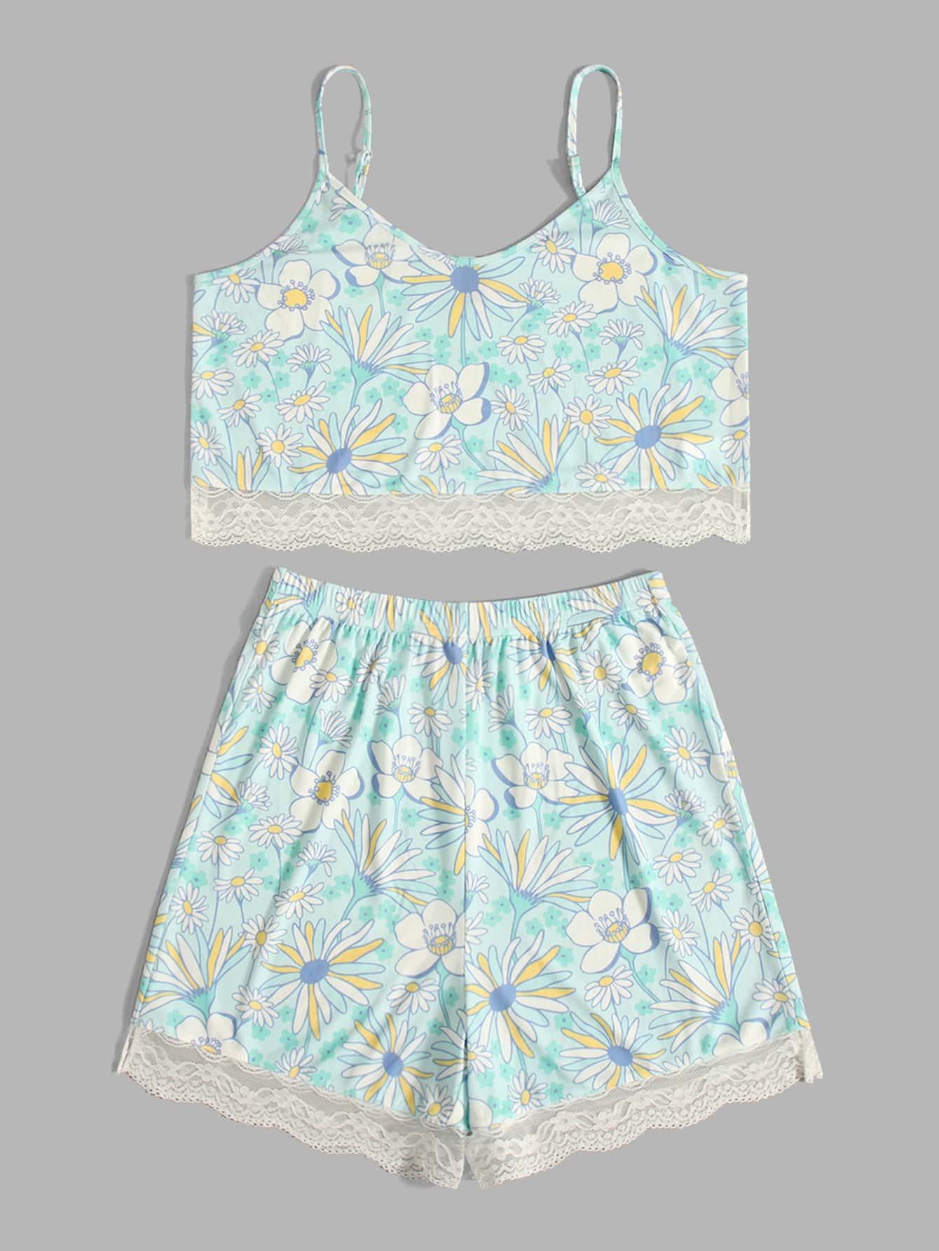 ROMWE X Amy Suther Floral Print Contrast Lace Pajama Set