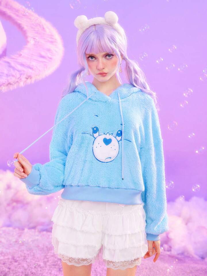 ROMWE X Care Bears 3d Ear Bear Embroidered Fuzzy Hoodie