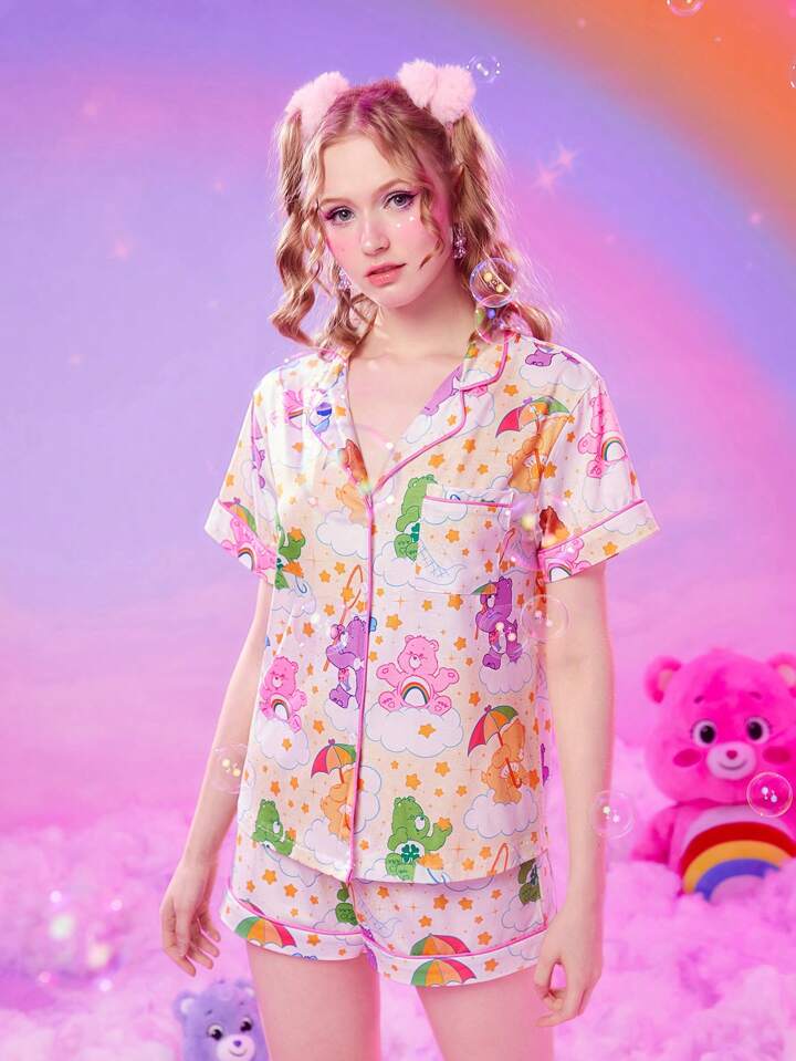 ROMWE X Care Bears Cartoon Graphic Contrast Binding PJ Set, School