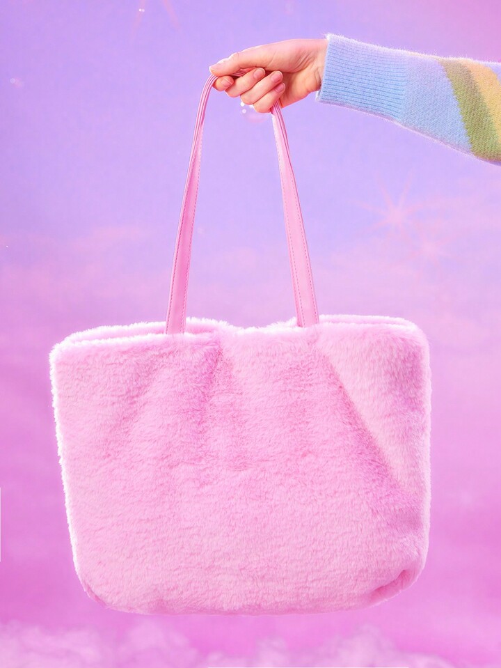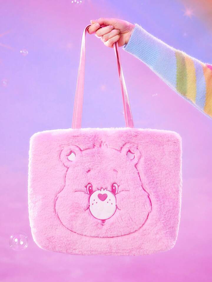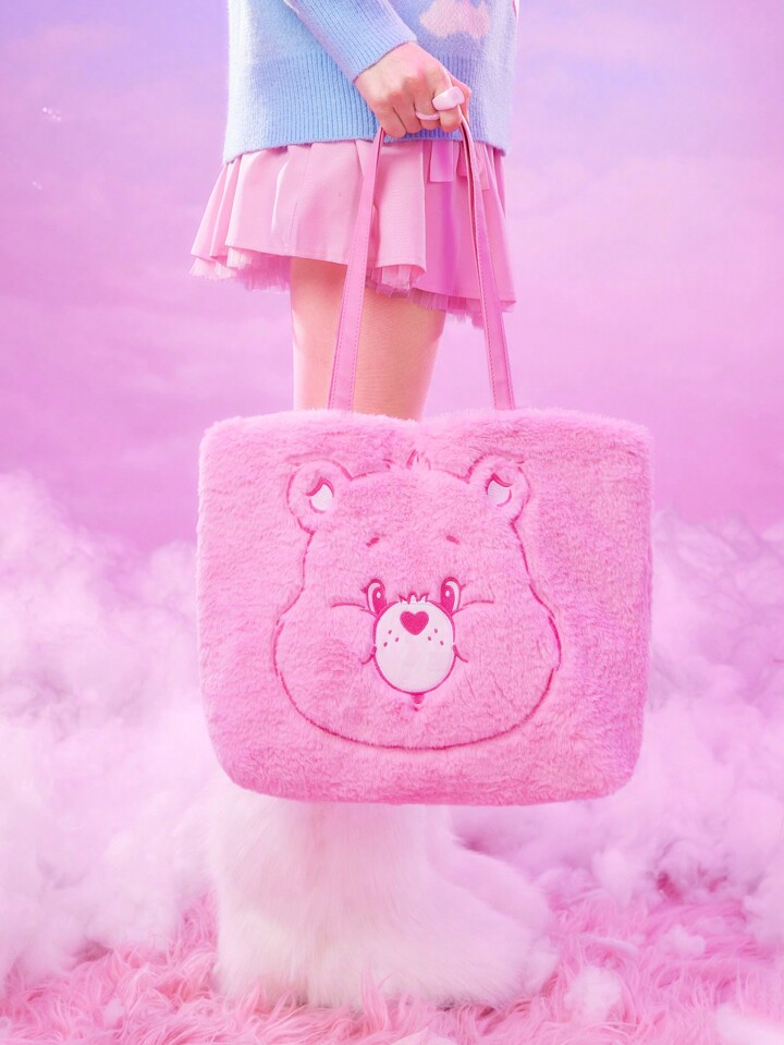 ROMWE X Care Bears Fluffy Embroidered Plush Doll Shoulder Tote Bag, Valentines