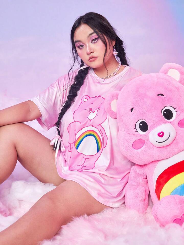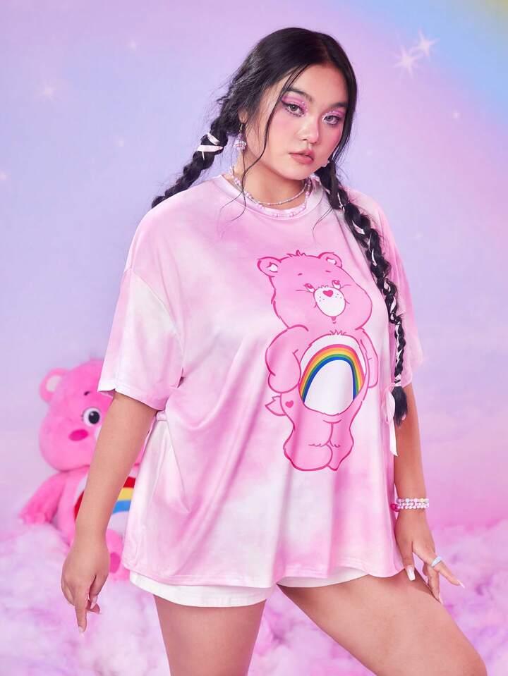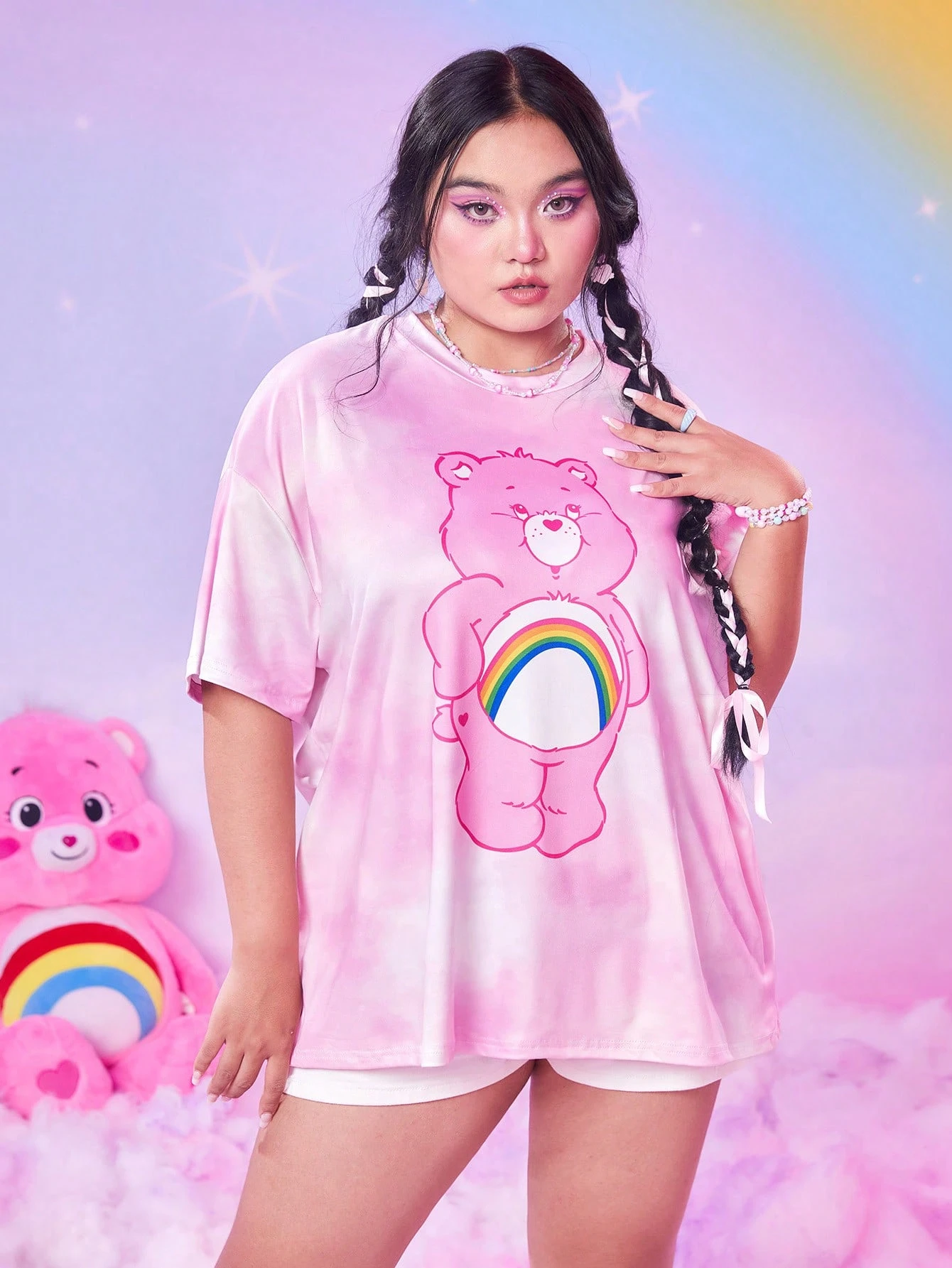 ROMWE X Care Bears Plus Bear Print Tie Dye Drop Shoulder Tee