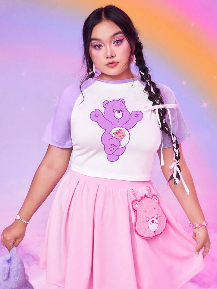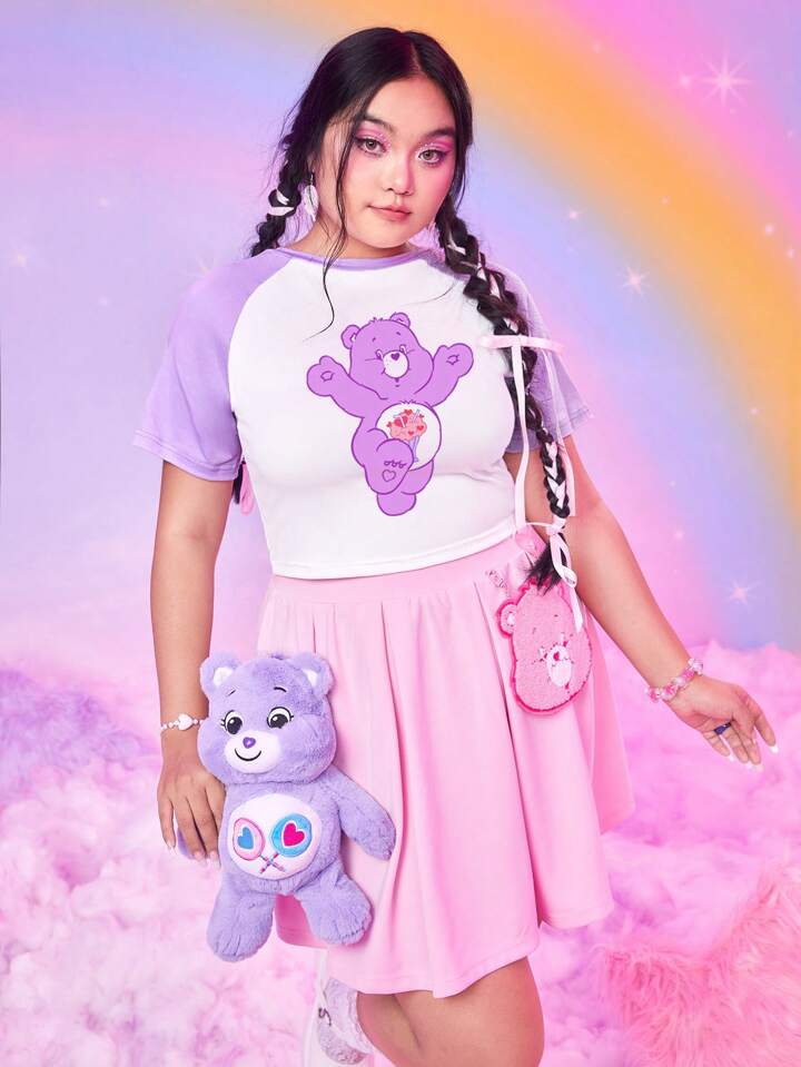 ROMWE X Care Bears Plus Cartoon Graphic Raglan Sleeve Tee