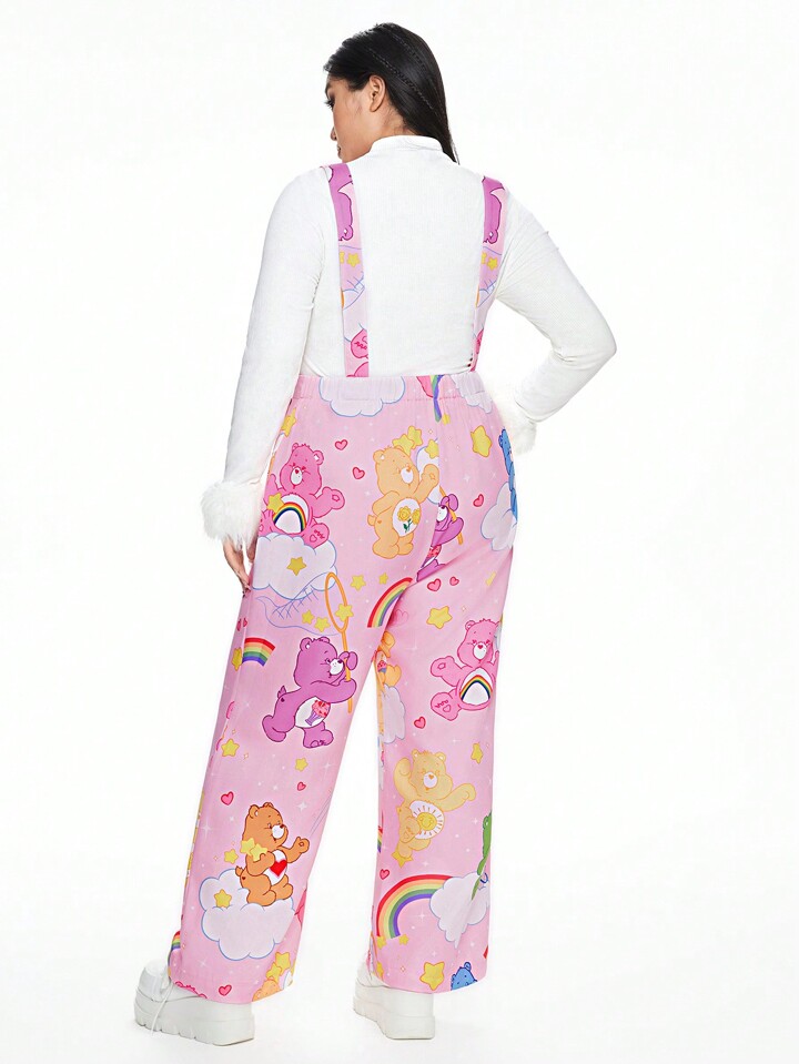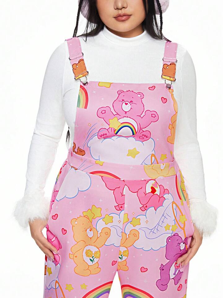 ROMWE X Care Bears Plus Size Cartoon Bear And Rainbow Print Pinafore Jumpsuit Without Tee