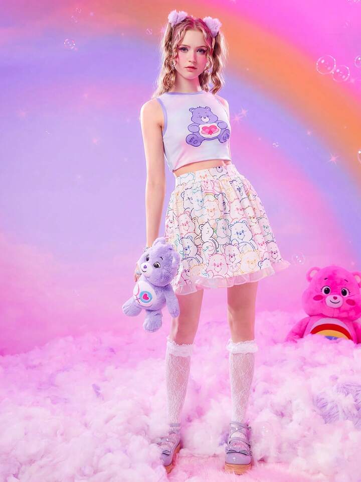 ROMWE X Care Bears Tie Dye Cartoon Graphic Contrast Binding Tank Top