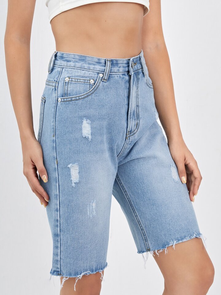 Raw Hem Ripped Denim Shorts, Mom Shorts