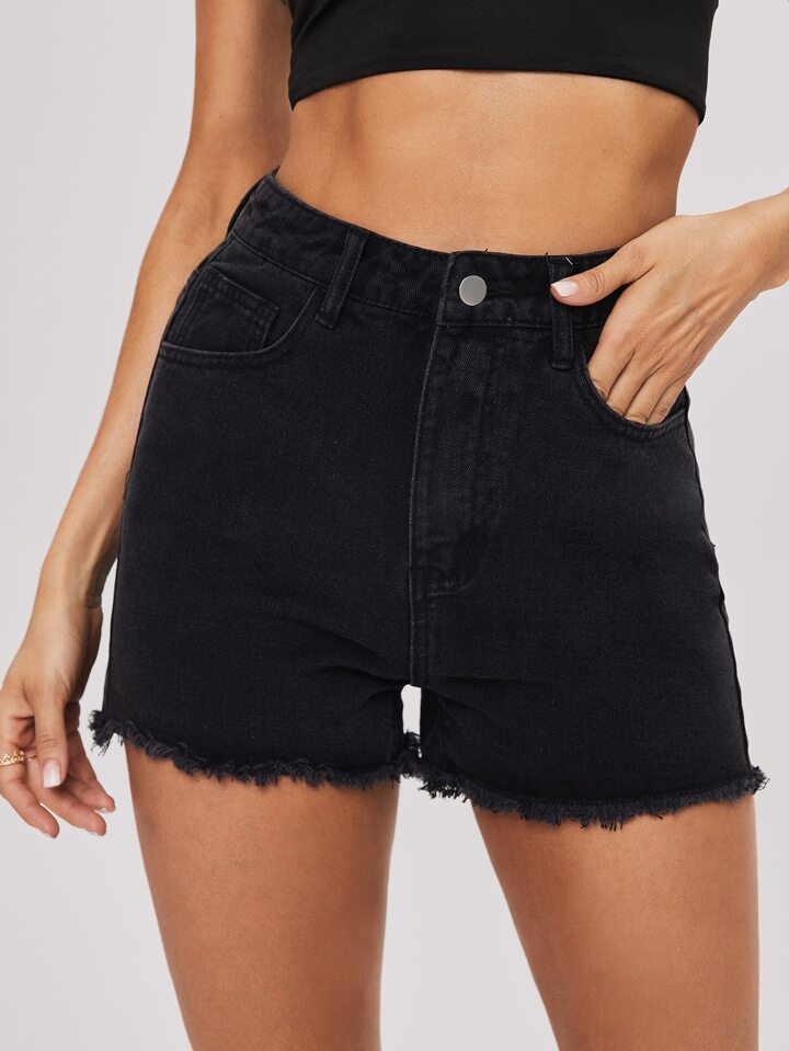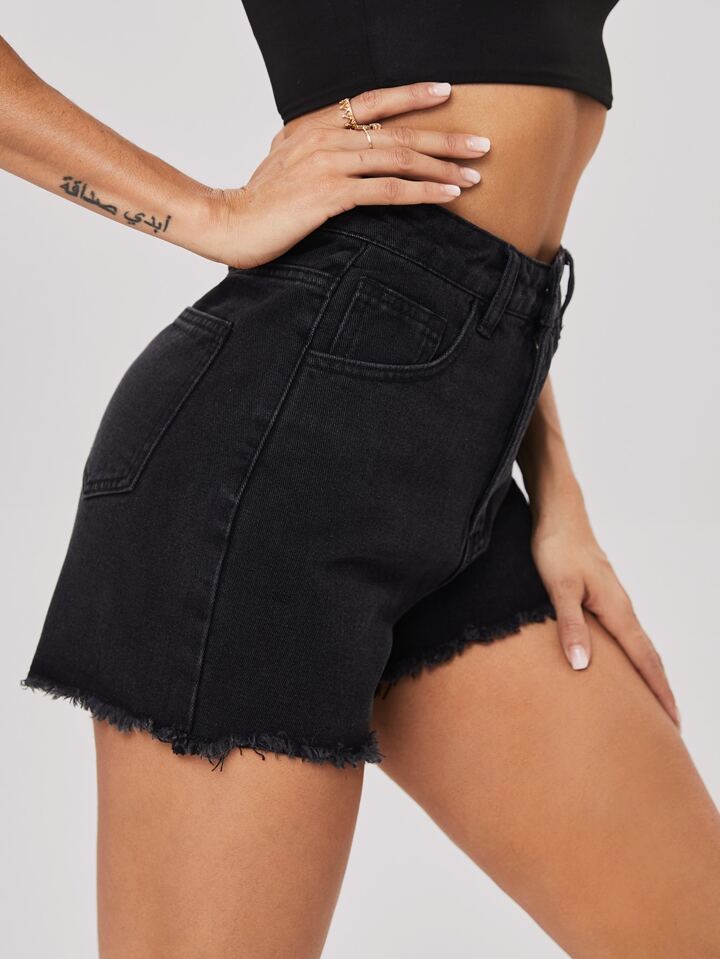 Raw Hem Slant Pocket Denim Shorts