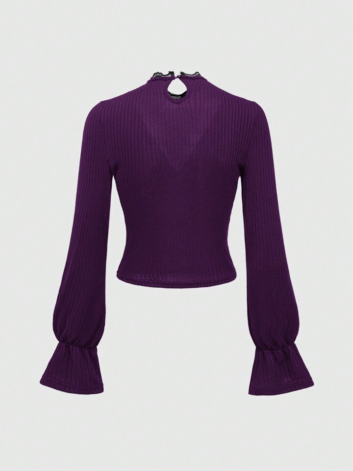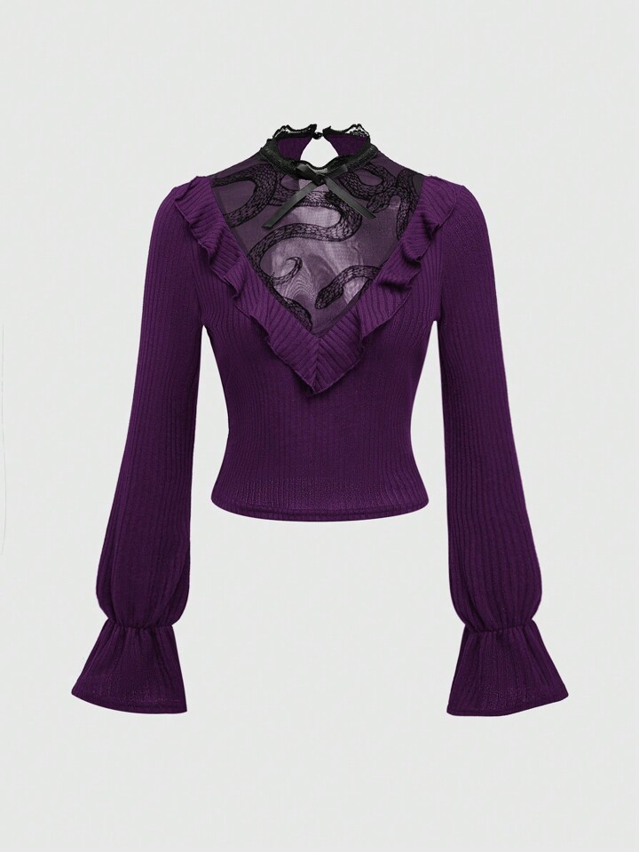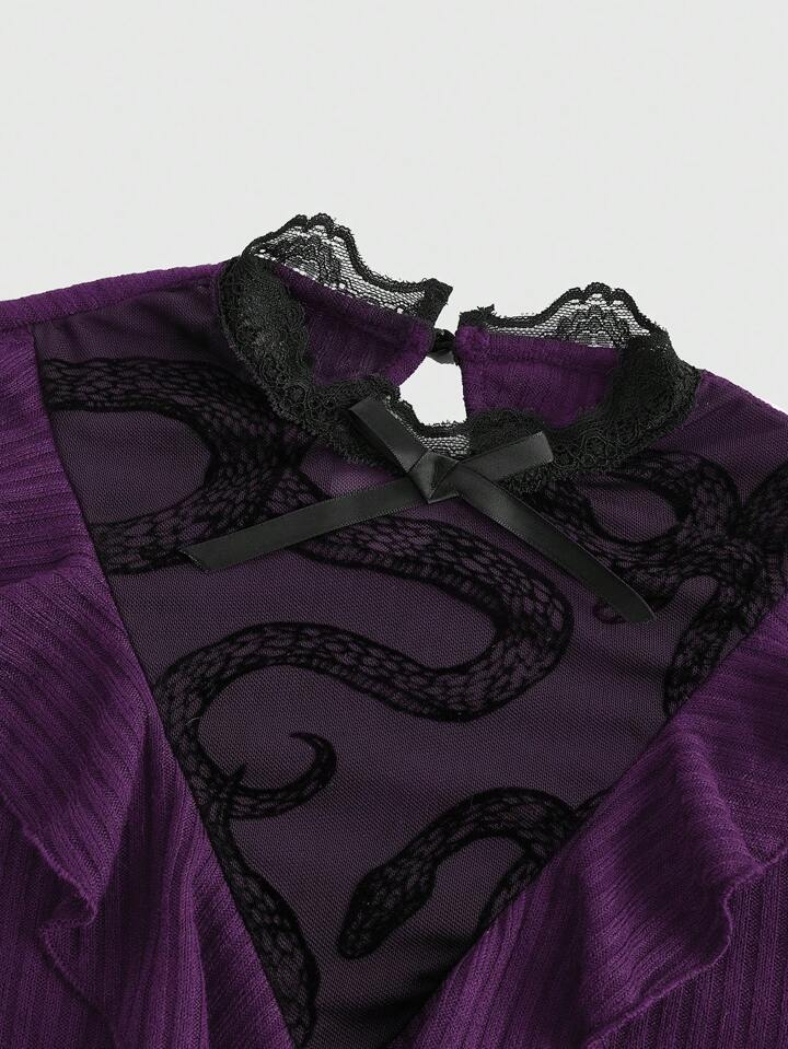 Retro Gothic Snake Pattern Semi-Sheer Flocked Fabric Puff Sleeve Blouse