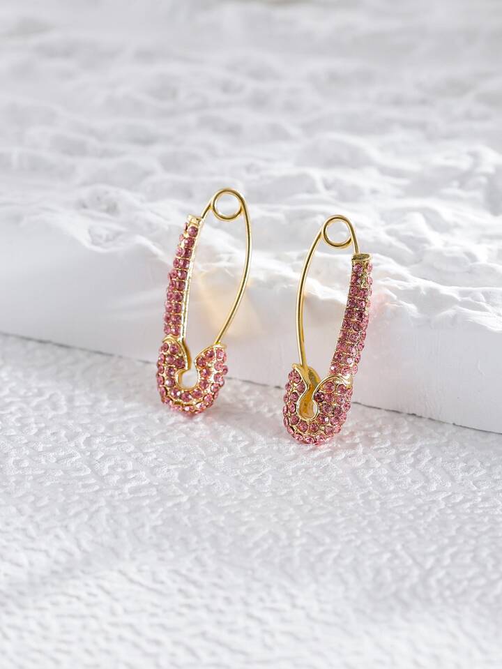 Rhinestone Decor Safety Pin Design Earrings