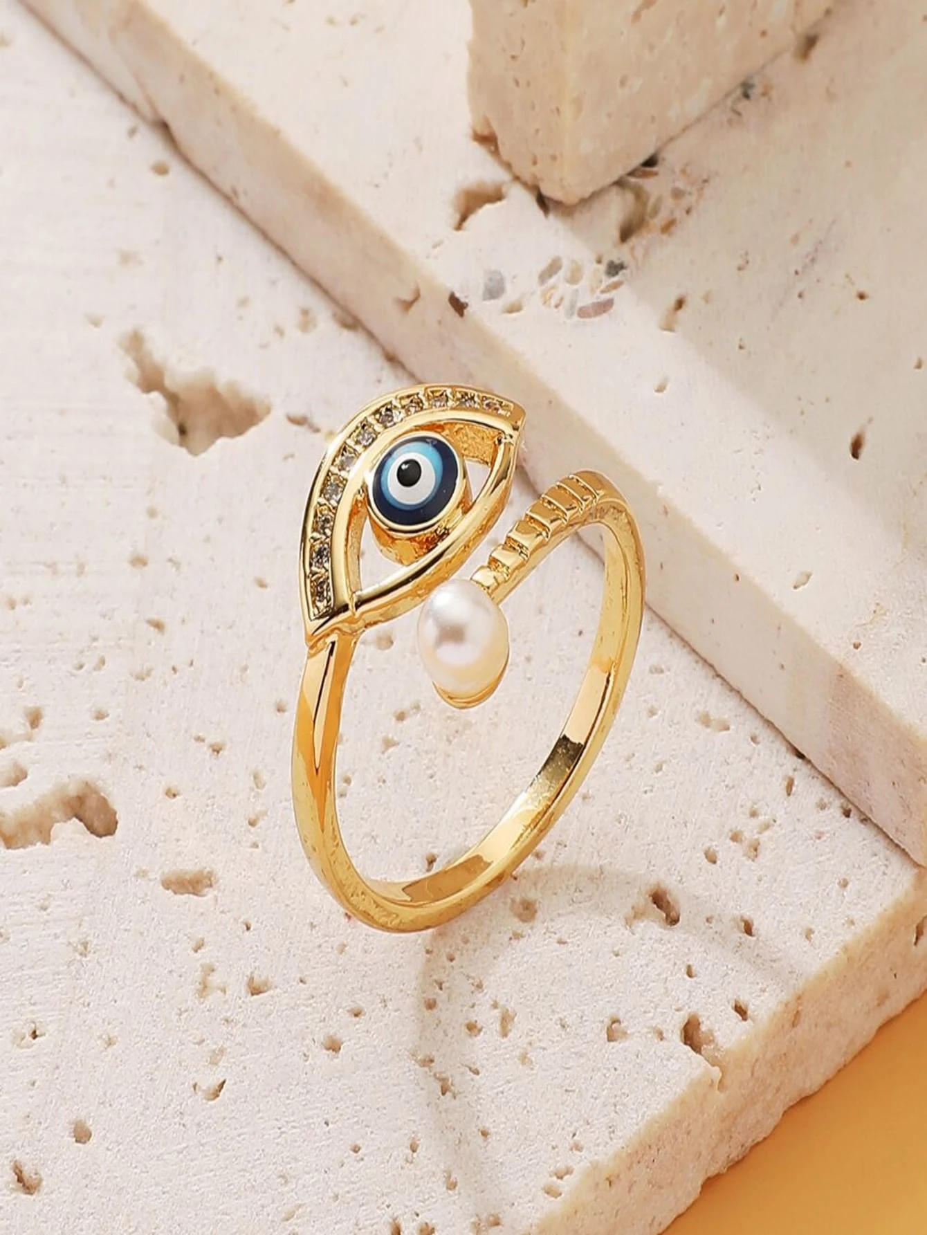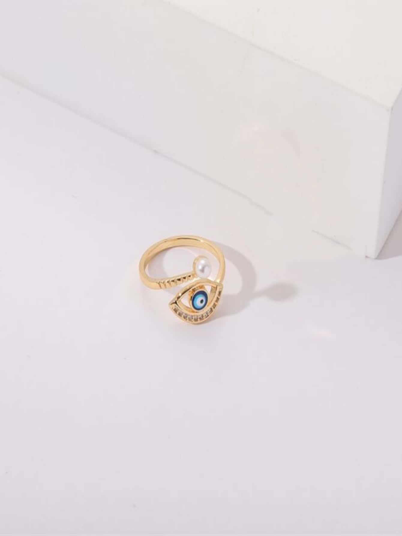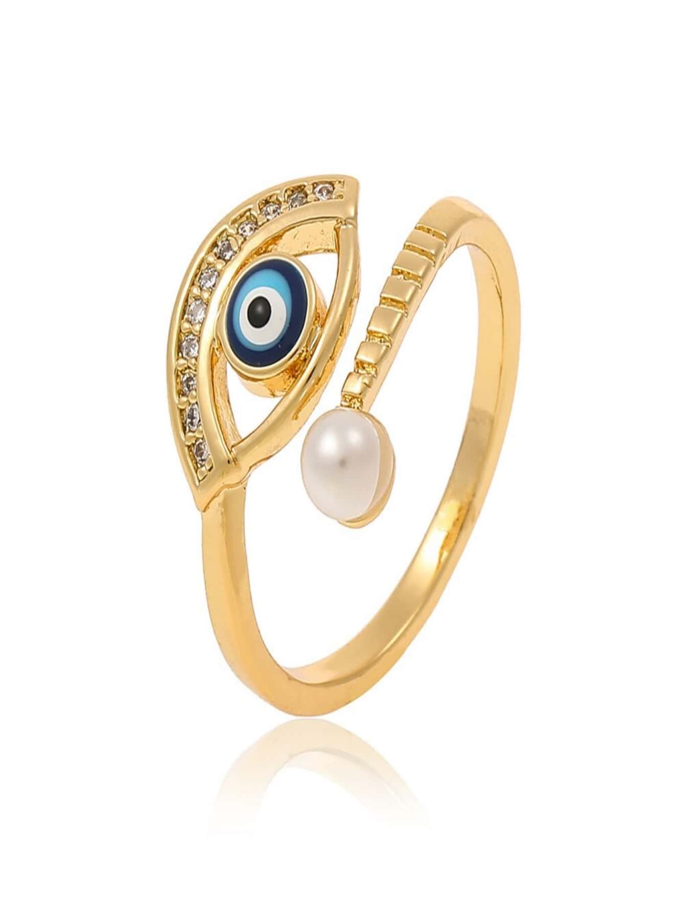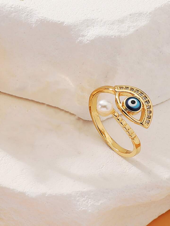 Rhinestone Eye & Faux Pearl Decor Ring