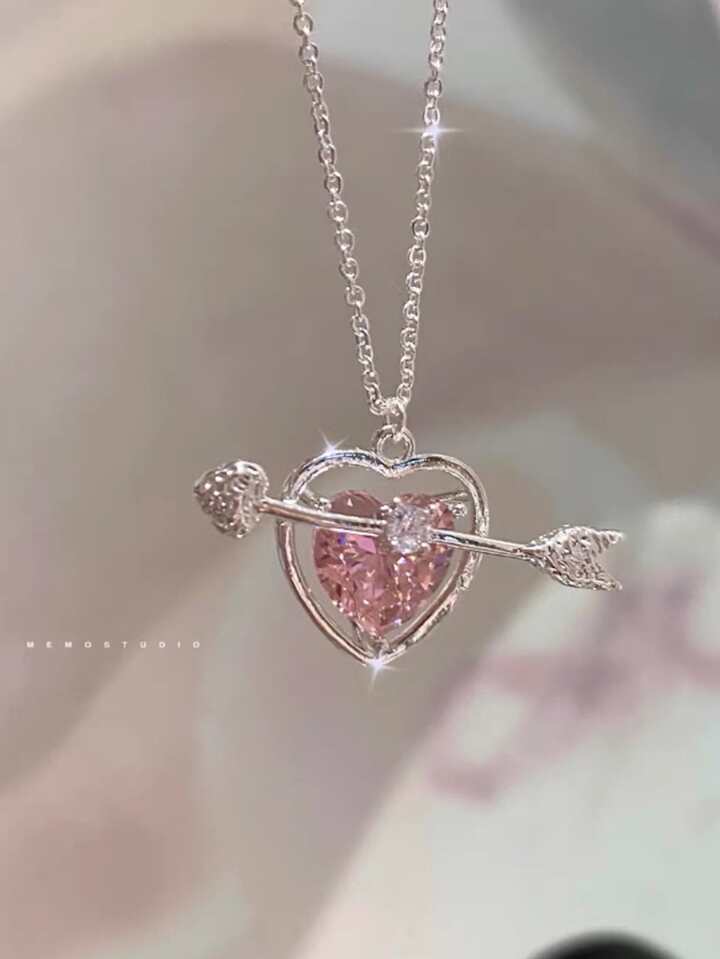 Rhinestone Heart & Arrow Charm Necklace