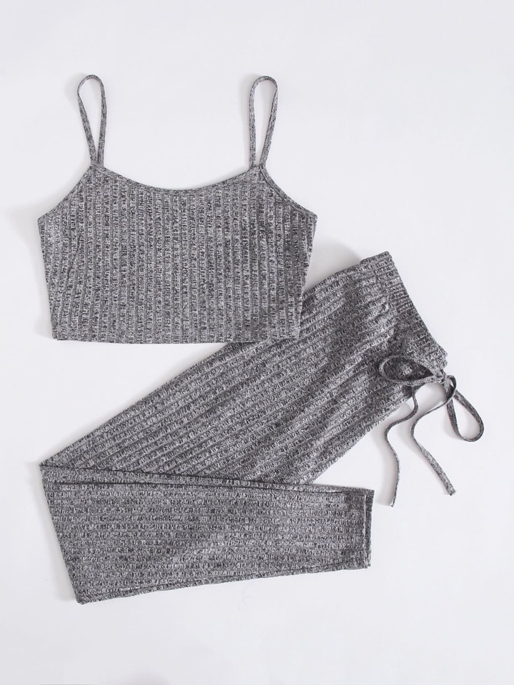 Rib-knit Crop Cami Top & Knot Waist Leggings Set