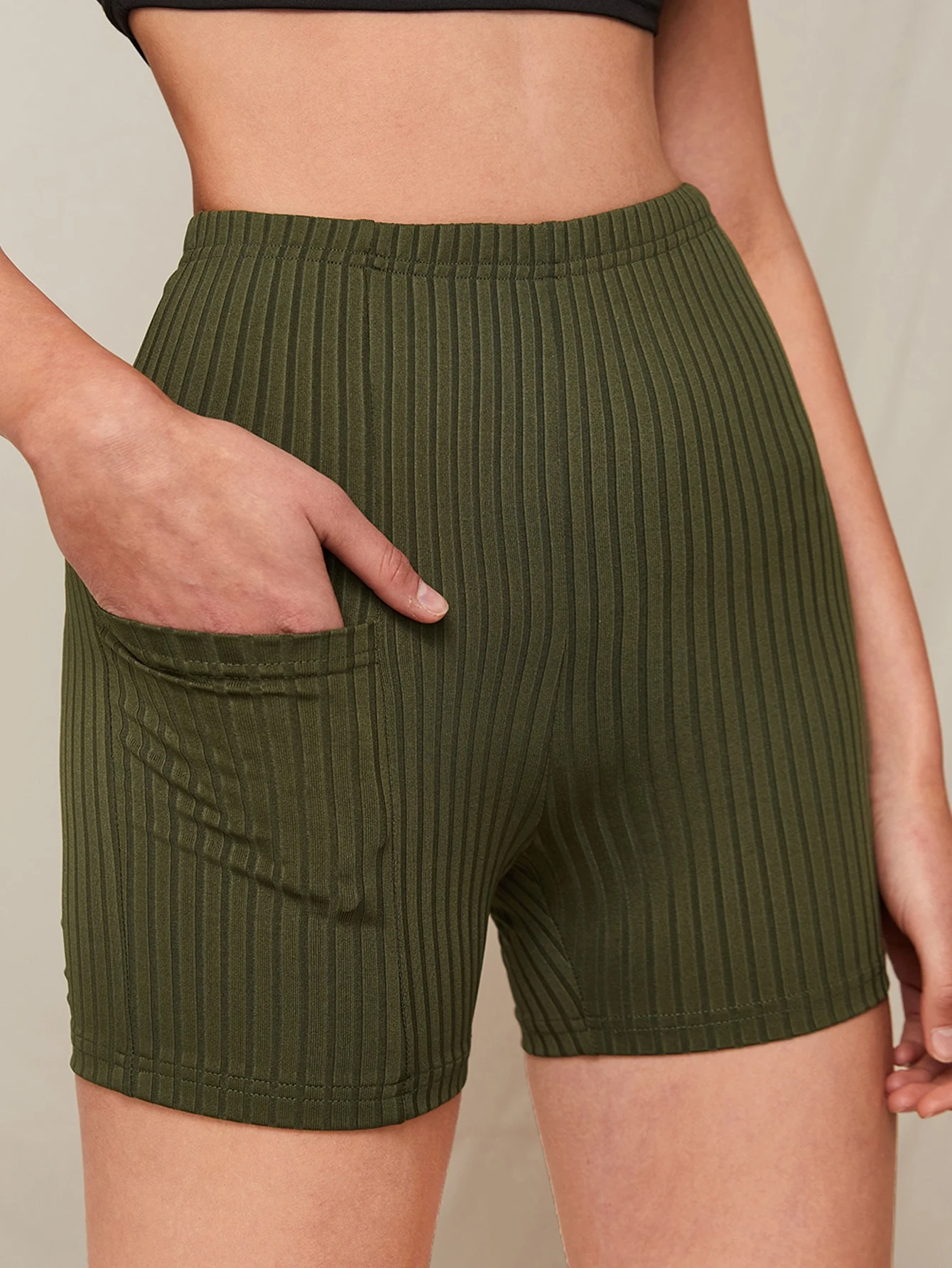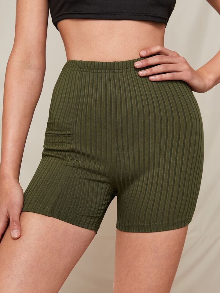 Ribbed Biker Shorts With Phone Pocket