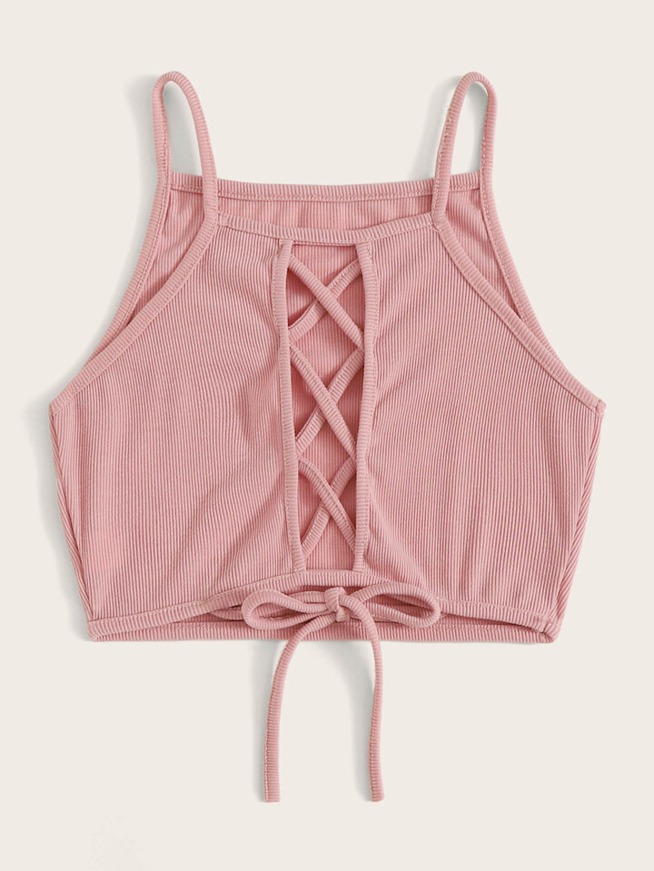Ribbed Lace-up Back Cami Top