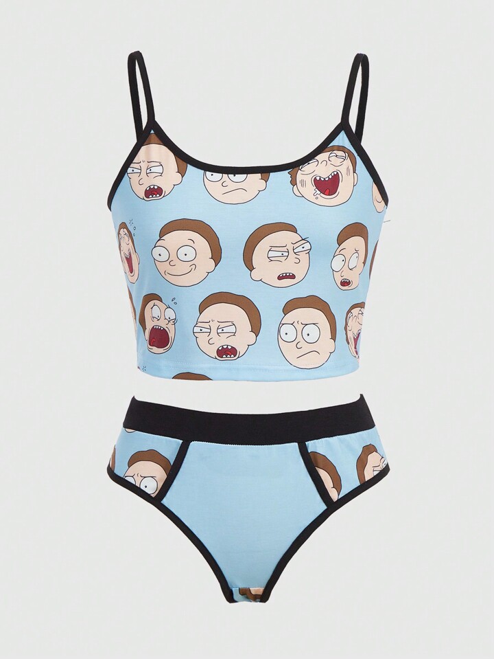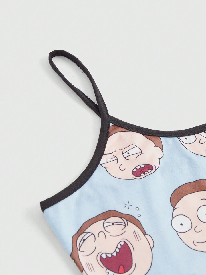 Rick and Morty | ROMWE Cartoon Graphic Contrast Binding Lingerie Set