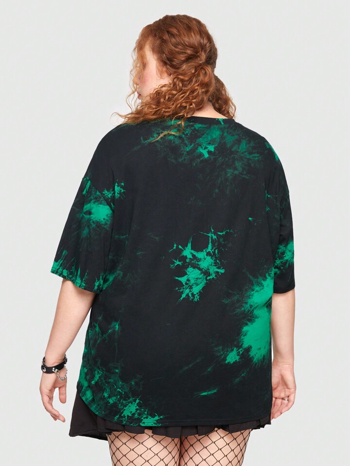 Rick and Morty | ROMWE Plus Tie Dye Cartoon & Letter Graphic Drop Shoulder Tee