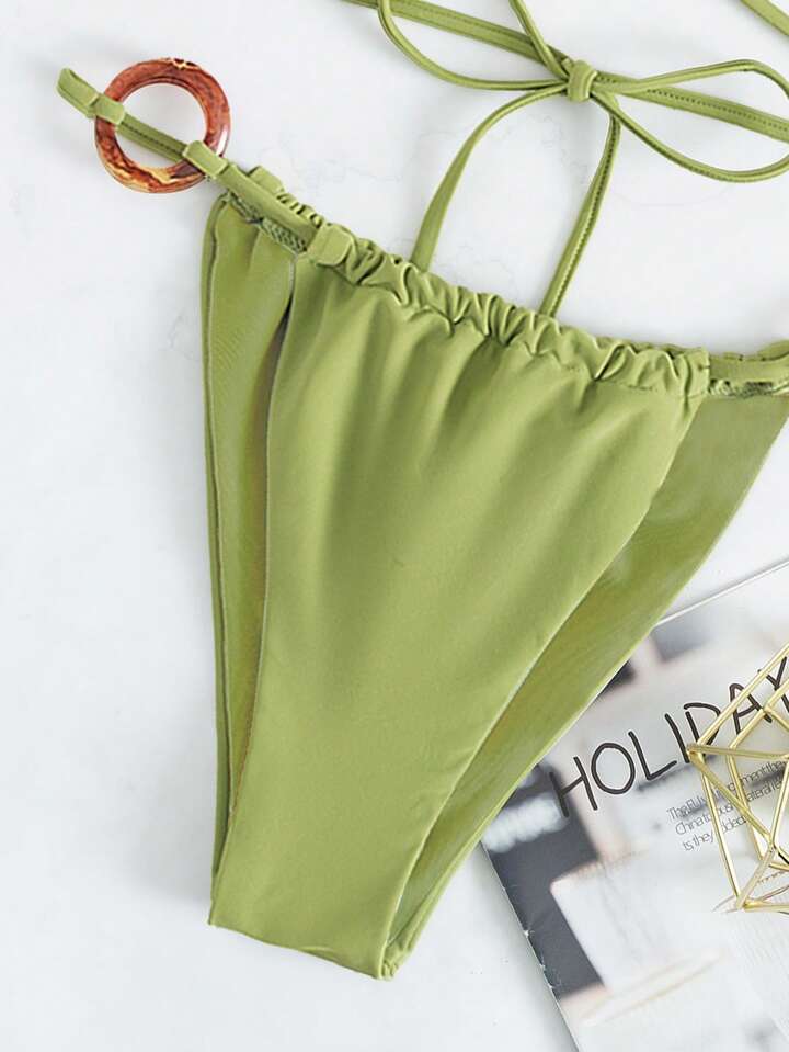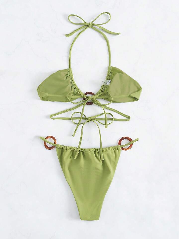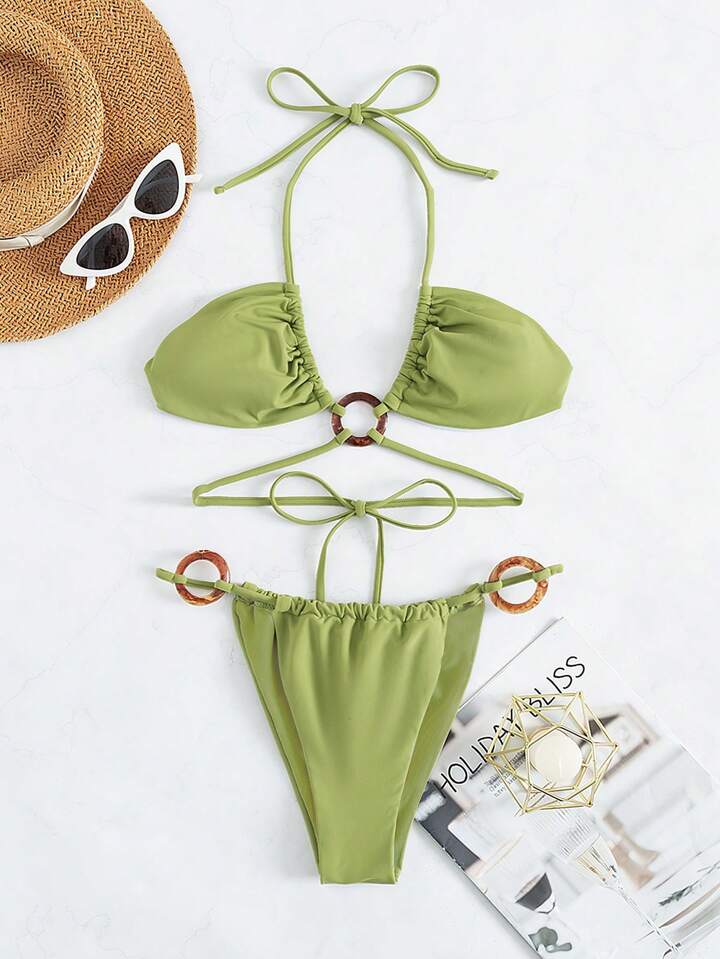 Ring Linked Halter Bikini Set For Summer Beach