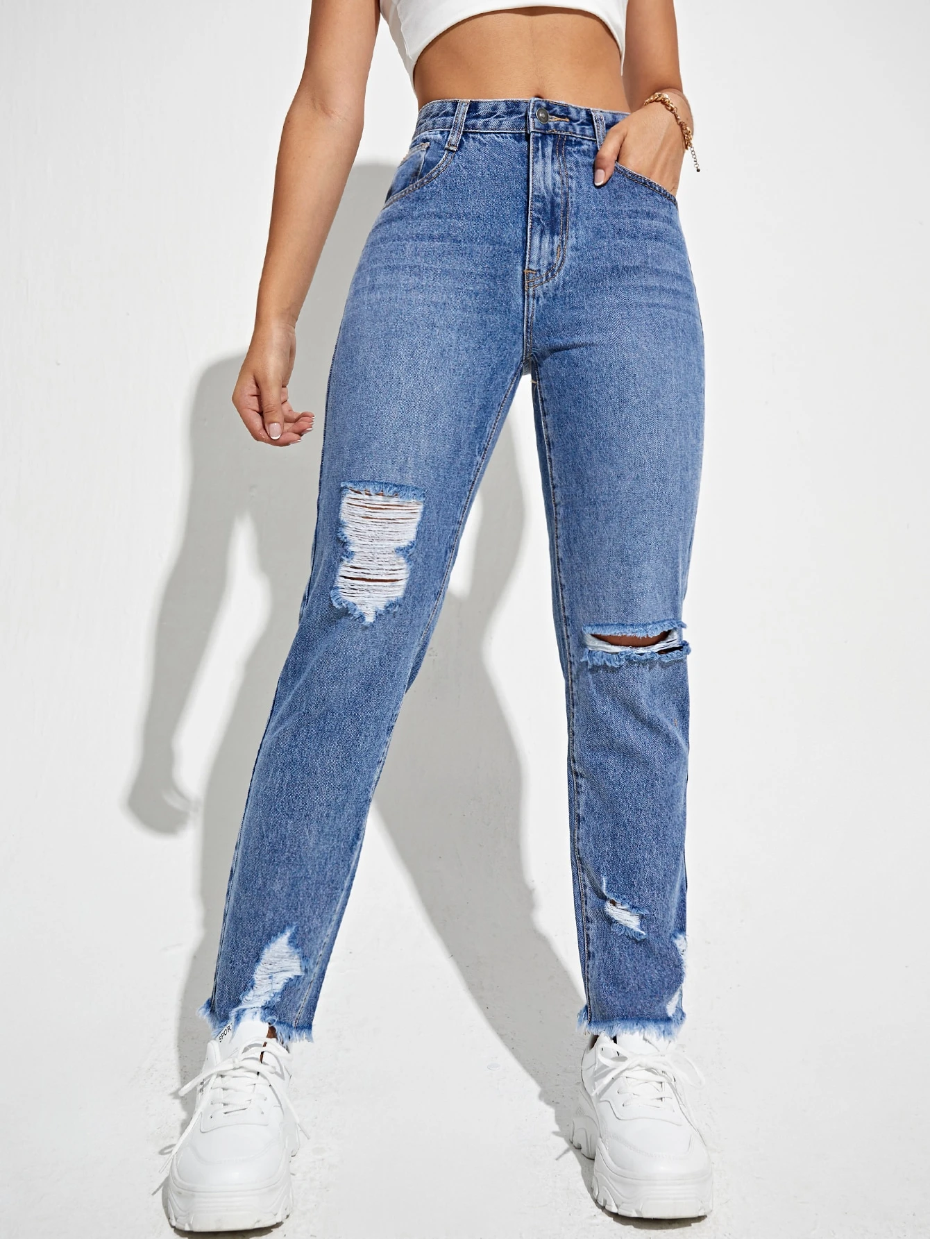 Ripped Raw Hem Jeans