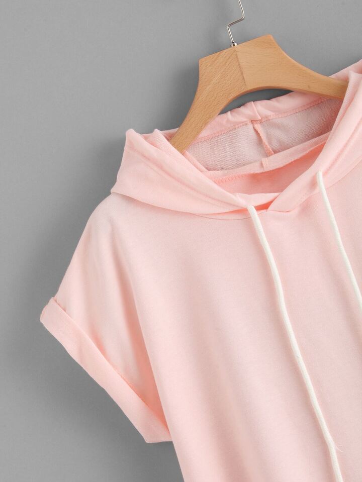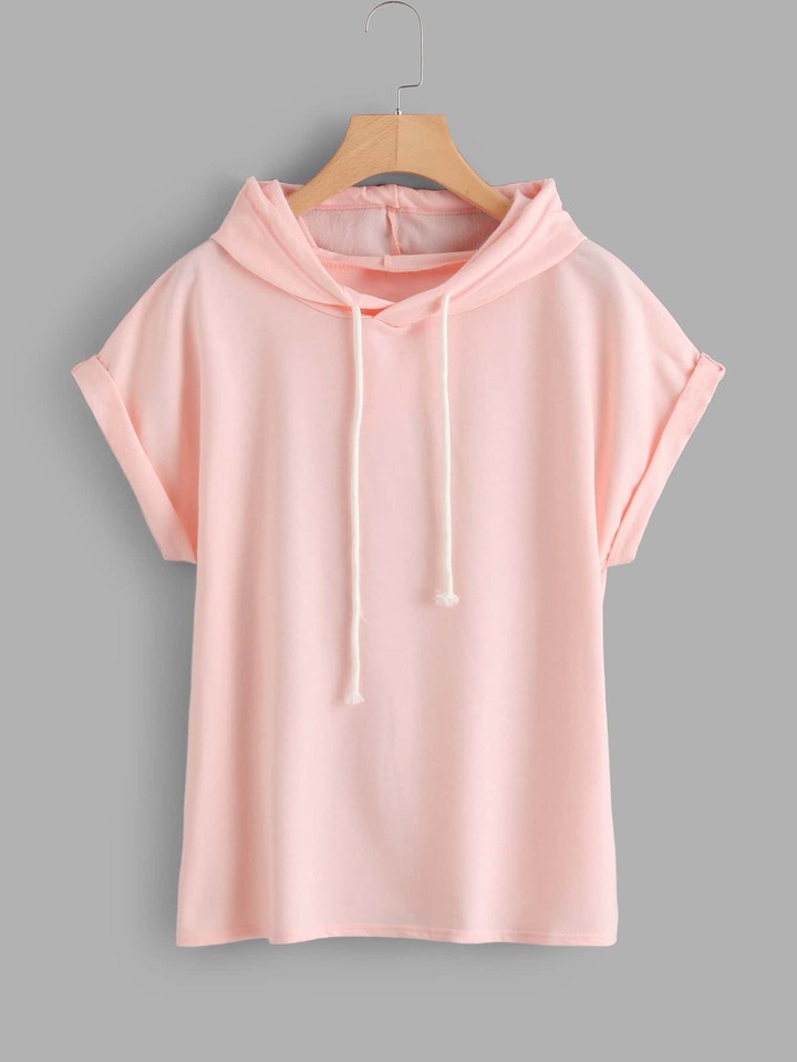 Roll Up Sleeve Hoodie And Contrast Trim Shorts