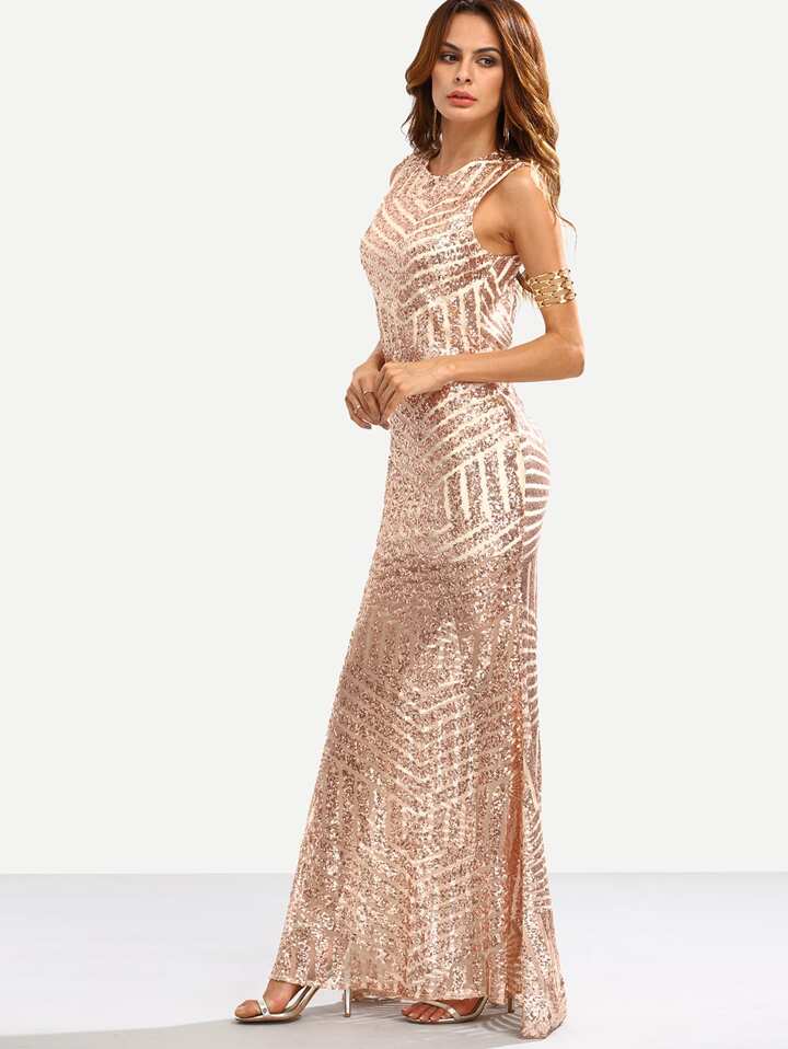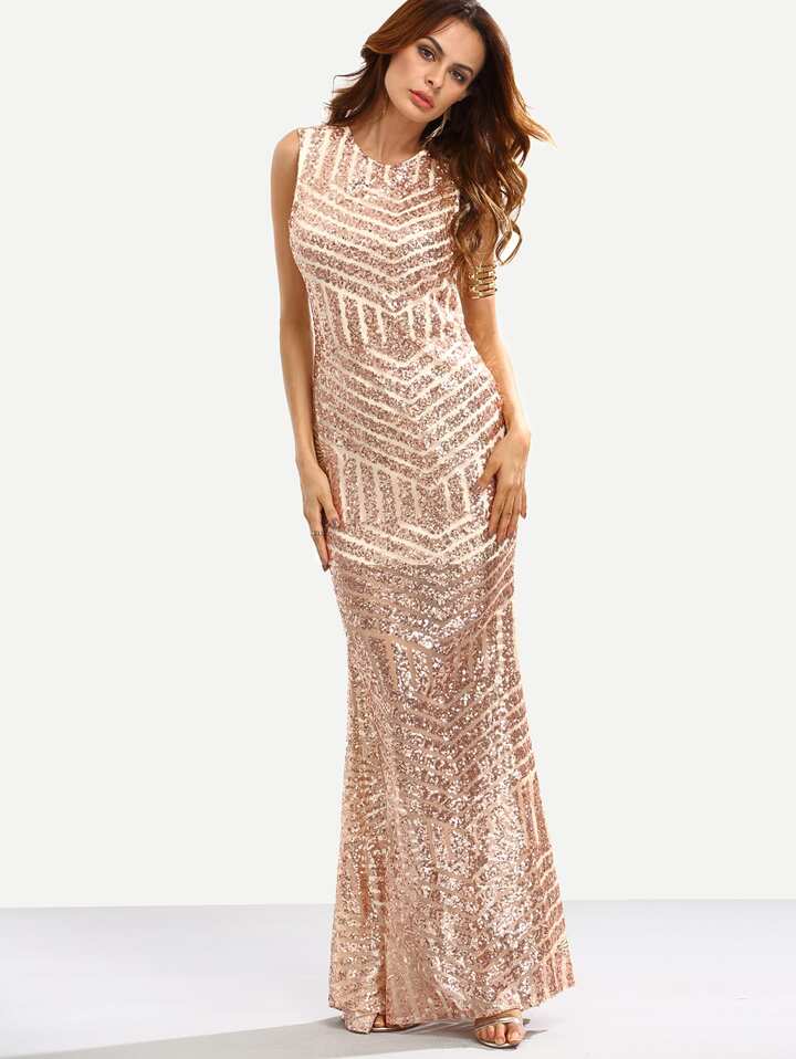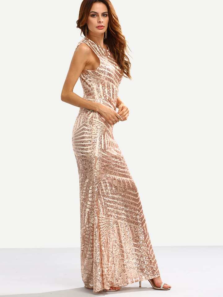 Rose Gold Sequins Embedded Cut Out Back Mermaid Dress