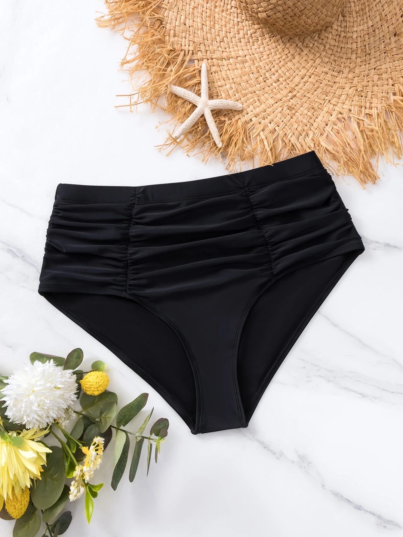 Ruched High Waisted Bikini Panty, For Summer Beach Vacation