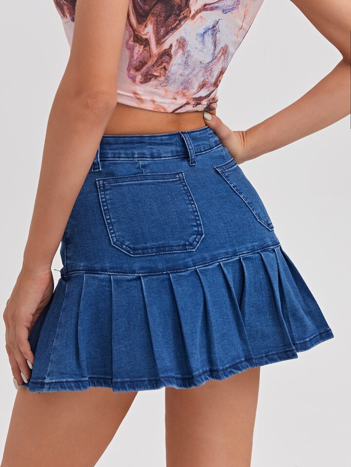 Ruffle Hem Solid Denim Skirt