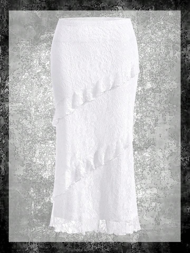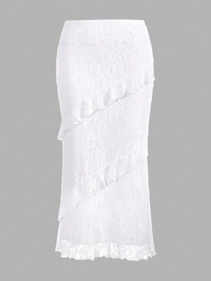 Ruffle Trim Lace Overlay Skirt Without Belt