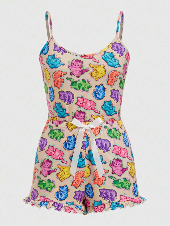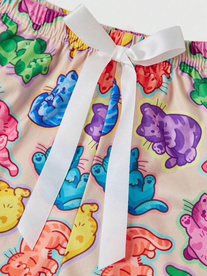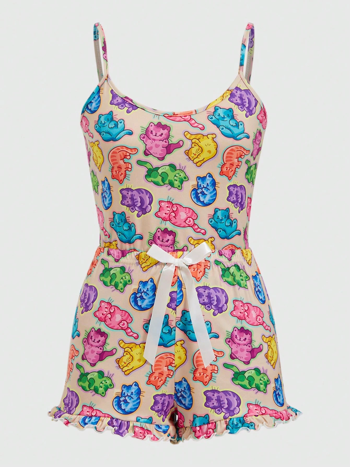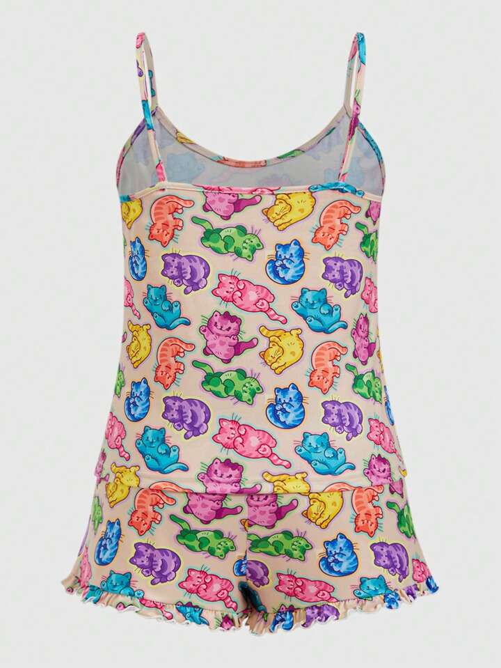SHIRATWIG Colorful Cat Themed Tank Top And Shorts Pyjama Set