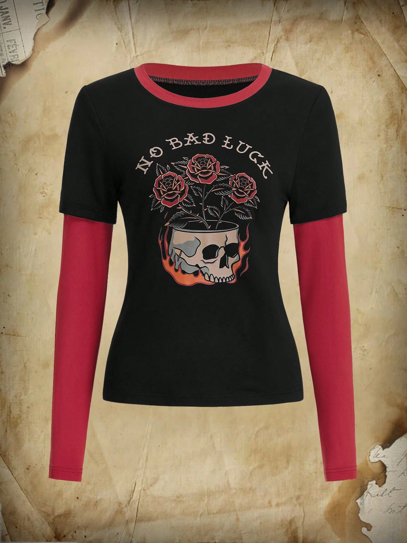 SNAP SUPPLY11 Academia 2 In 1 Skull & Floral Graphic Tee