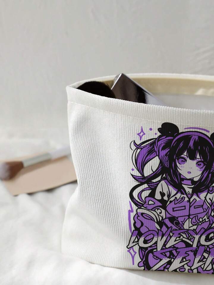 Sapstudio Anime Double-sided Floral Printed Corduroy Cosmetic Bag