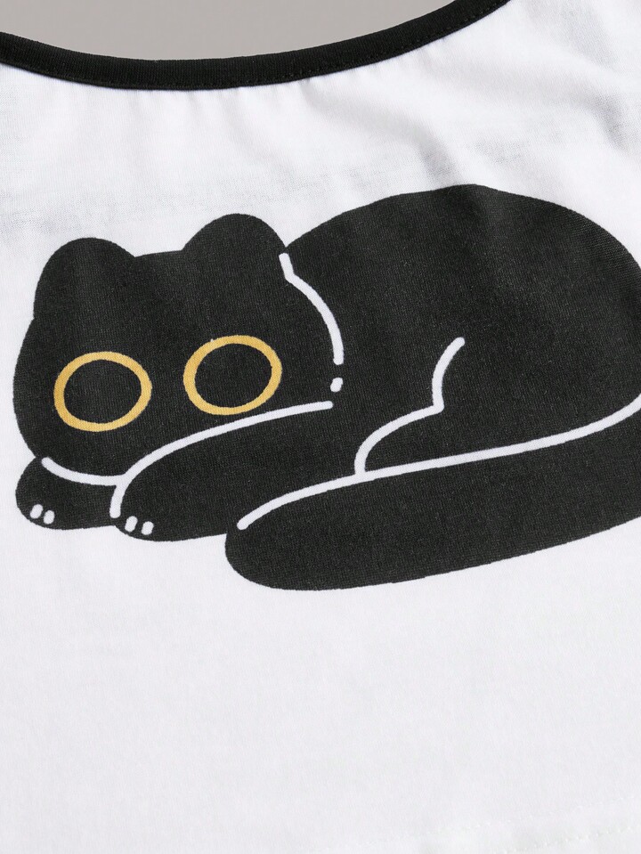 Satchi Collection Cartoon Graphic Contrast Binding PJ Set