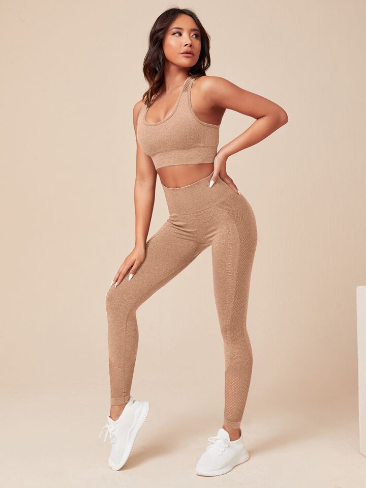 Seamless Sports Bra & Wide Band Waist Fishnet Panel Leggings