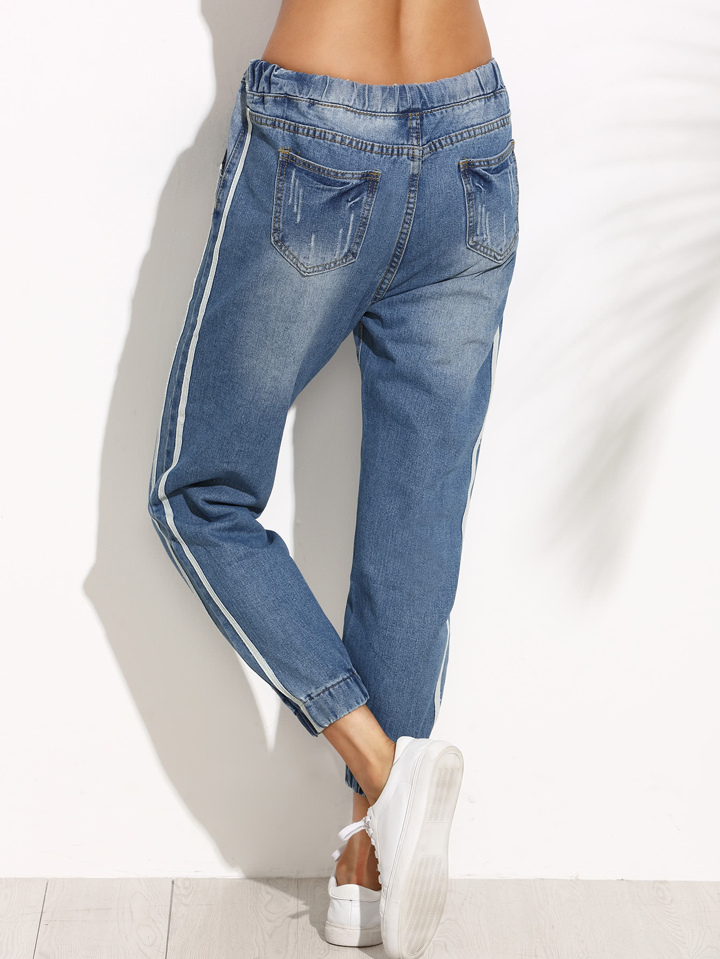 Side Stripe Elastic Cuff Boyfriend Jeans