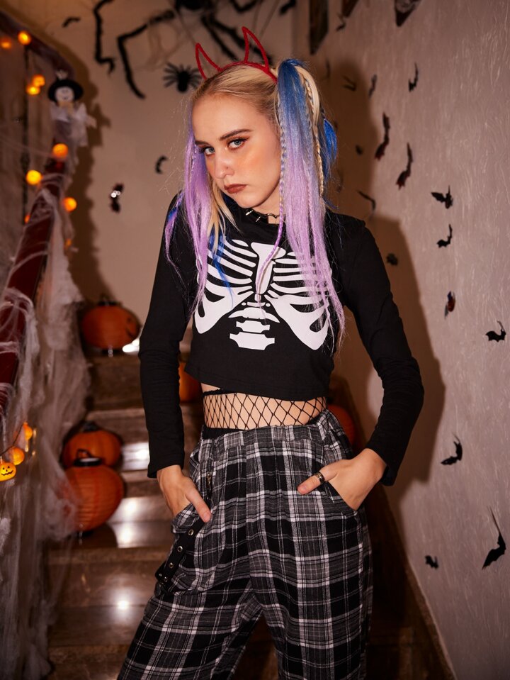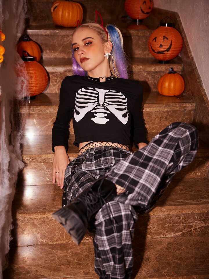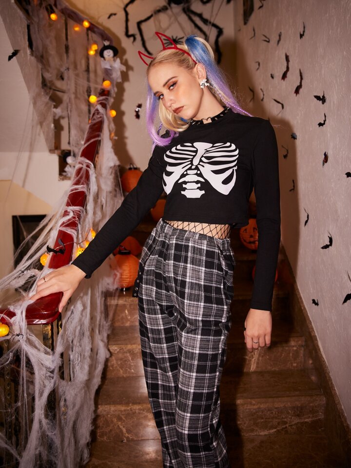 Skeleton Graphic Crop Tee