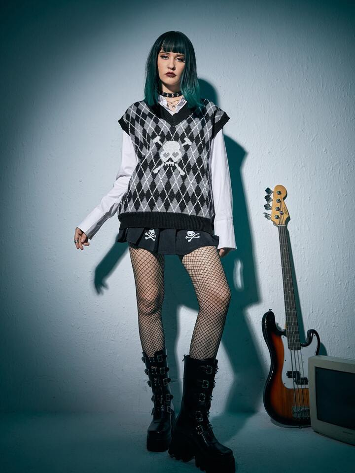 Skull & Argyle Pattern Sweater Vest