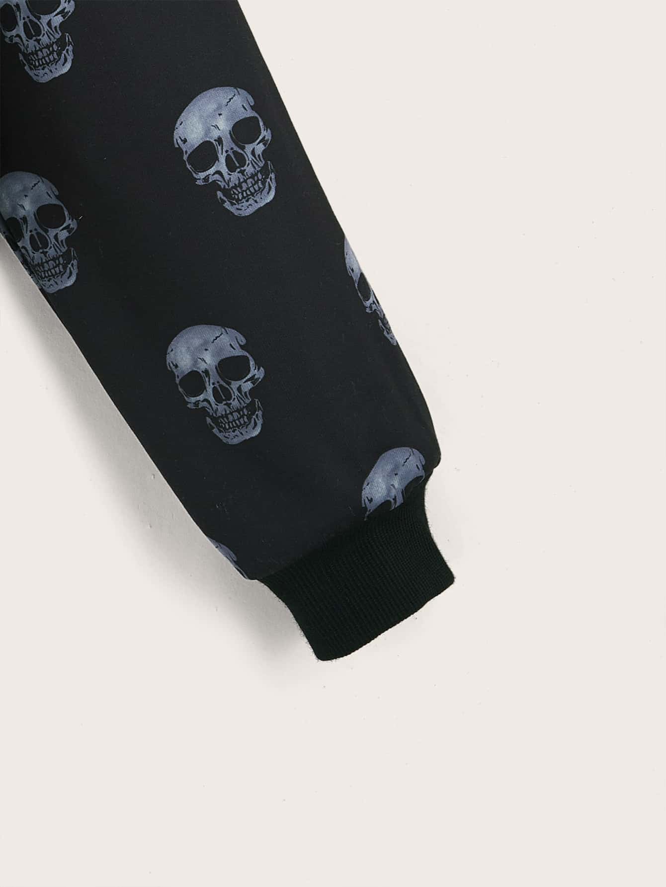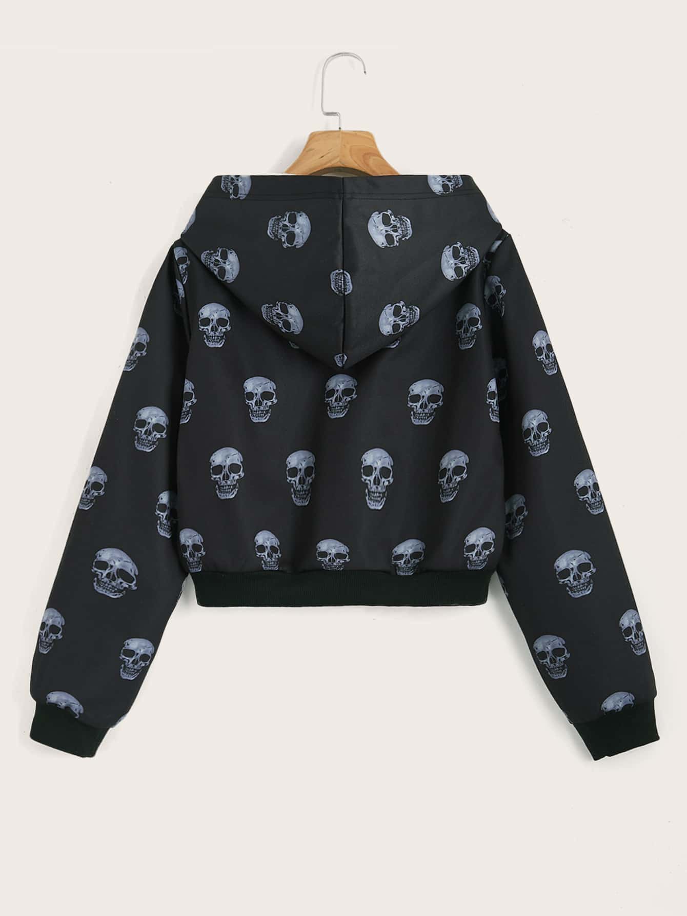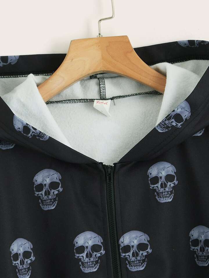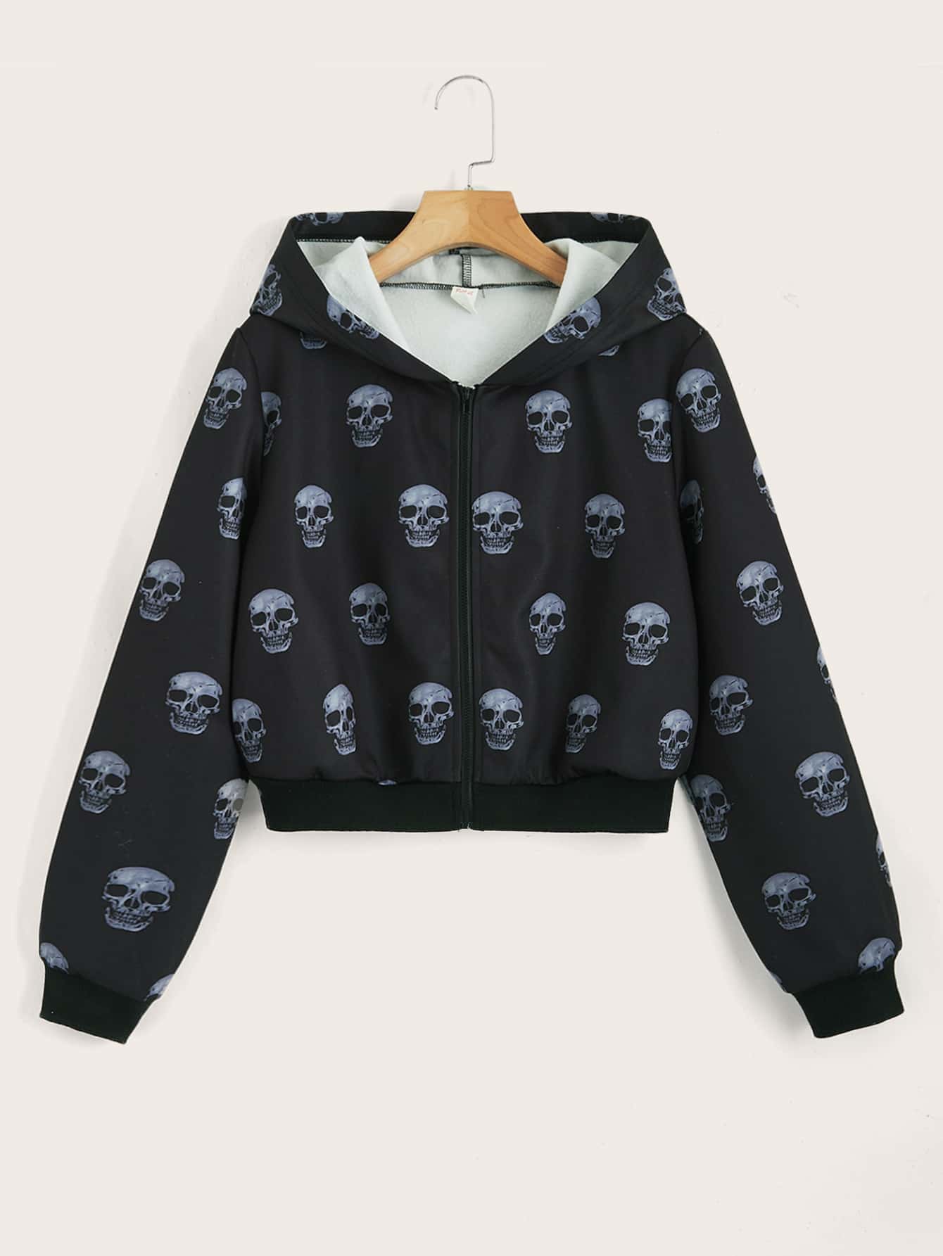 Skull Graphic Zip Up Crop Thermal Hoodie
