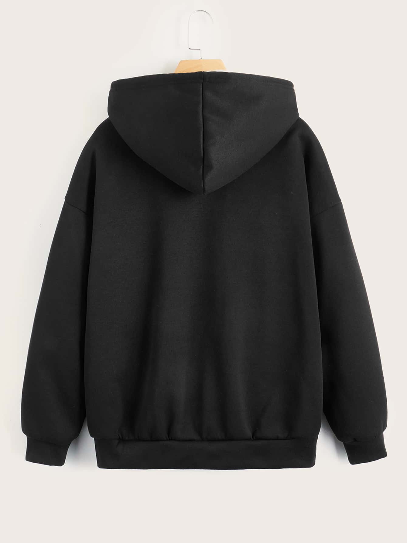 Skull Graphic Zip Up Pocket Drawstring Thermal Hoodie