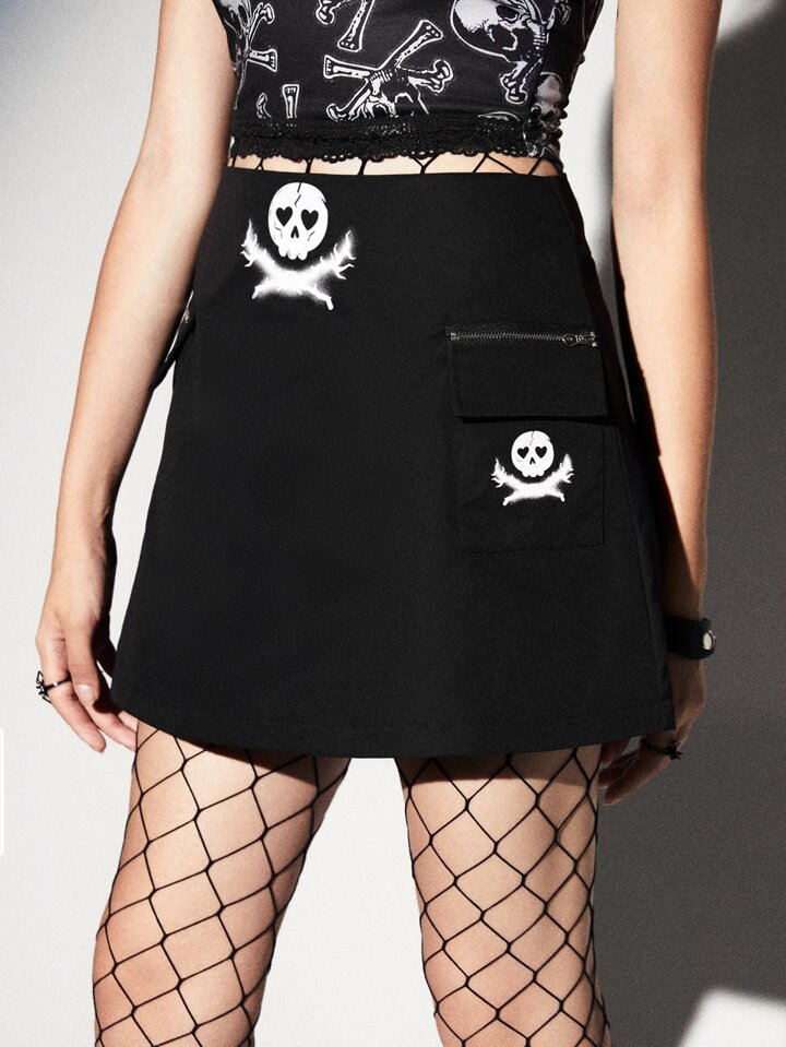 Skull Print Skirt