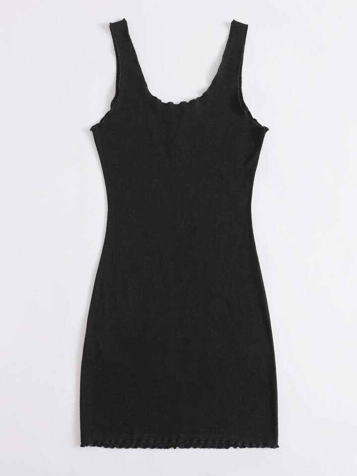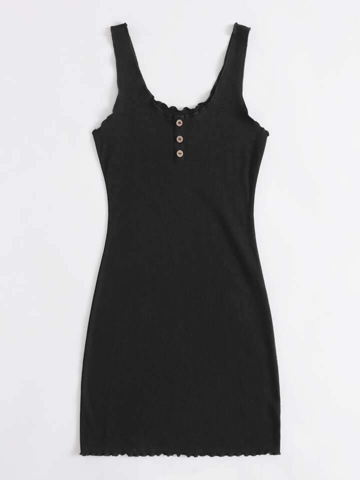 Sleeveless Buttoned Front Lettuce Trim Dress
