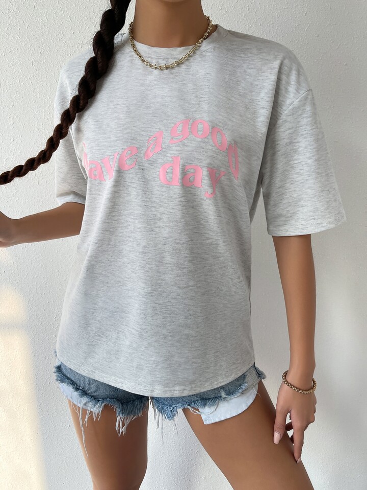 Slogan Graphic Drop Shoulder Tee Graphic Tees Women Tops