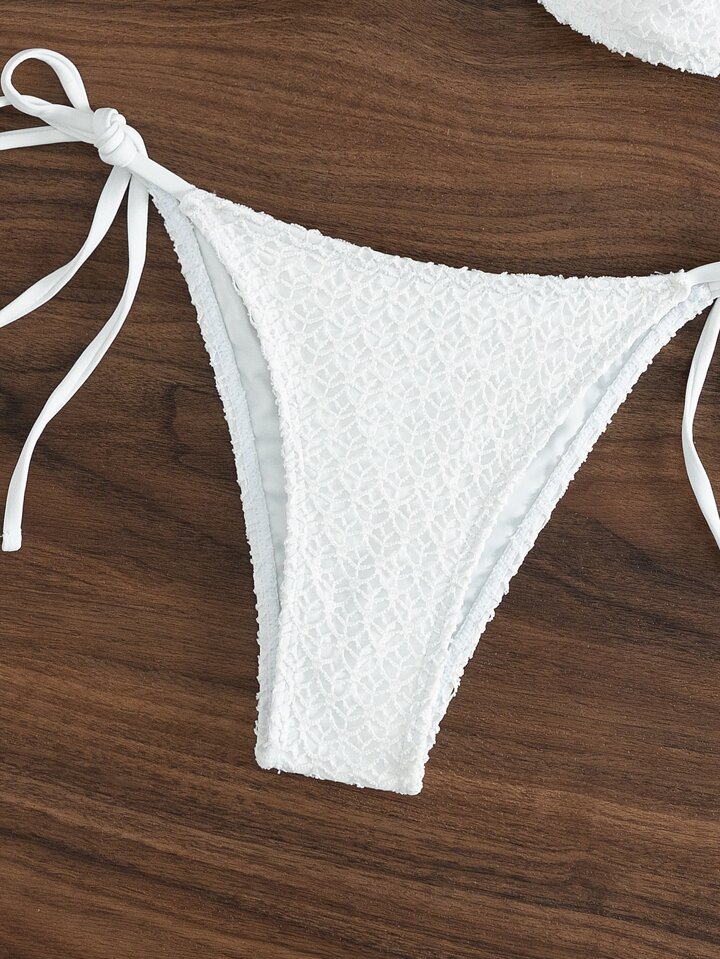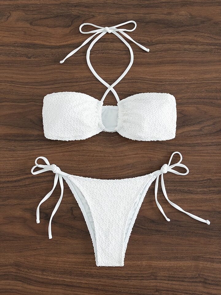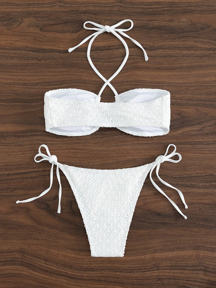 Smocked Halter Tie Side Summer Beach Bikini Set